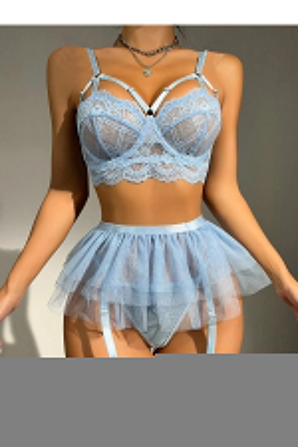 Bebe Mavi Bel Tüllü Kadın Seksi Fantezi Jartiyer Takım 2059