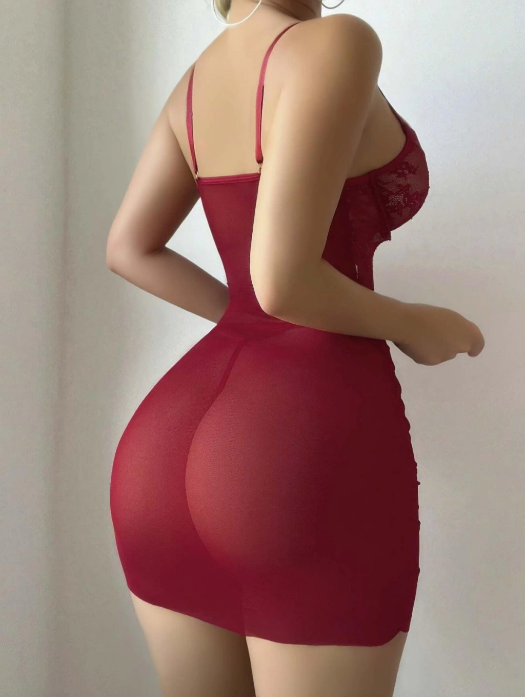 Kadın Kırmızı Fantezi Gecelik Tül Göğüs Dantel Dekolteli Fiyok detaylı 2162