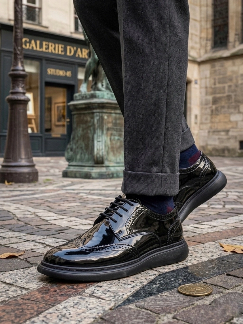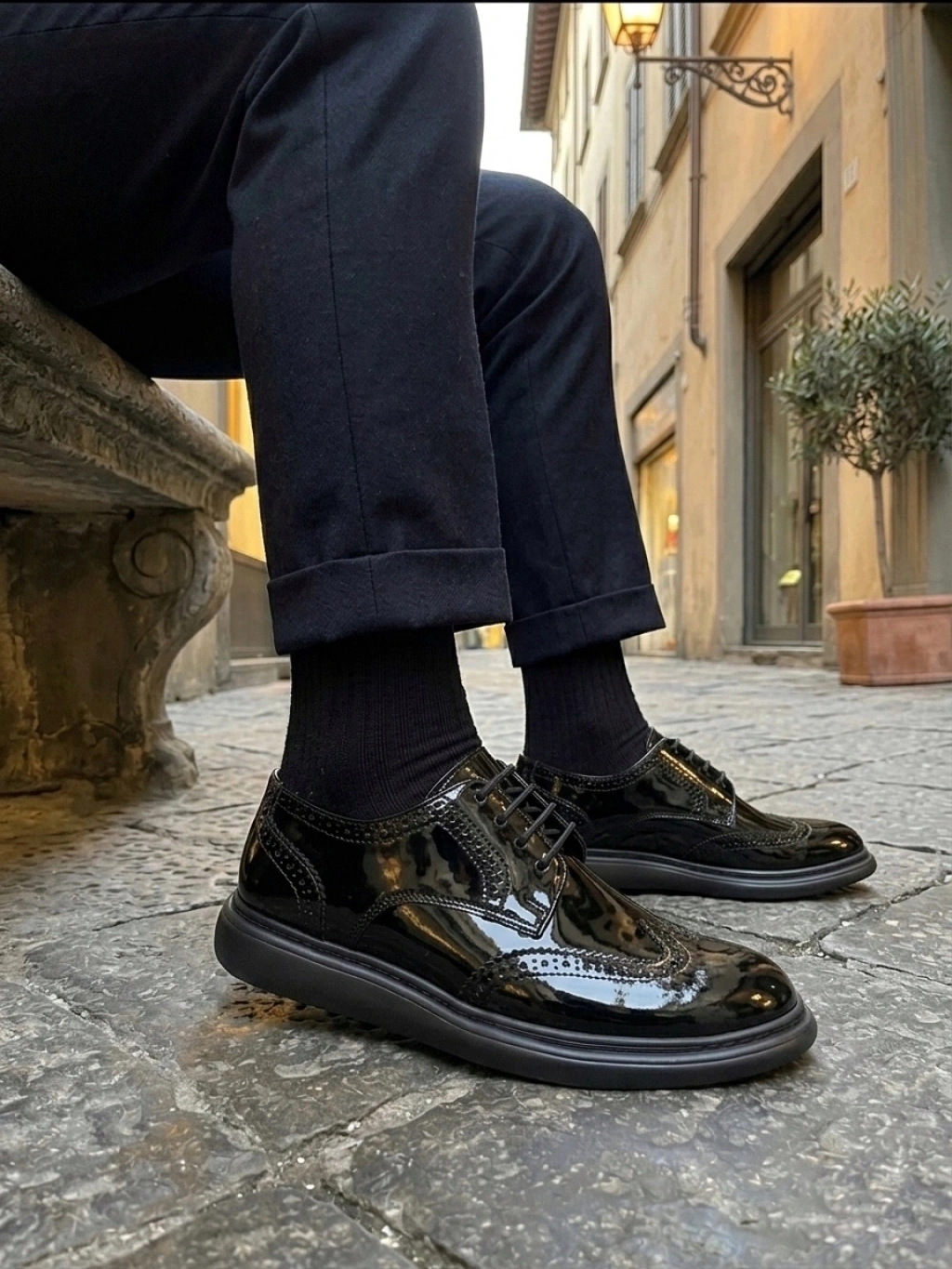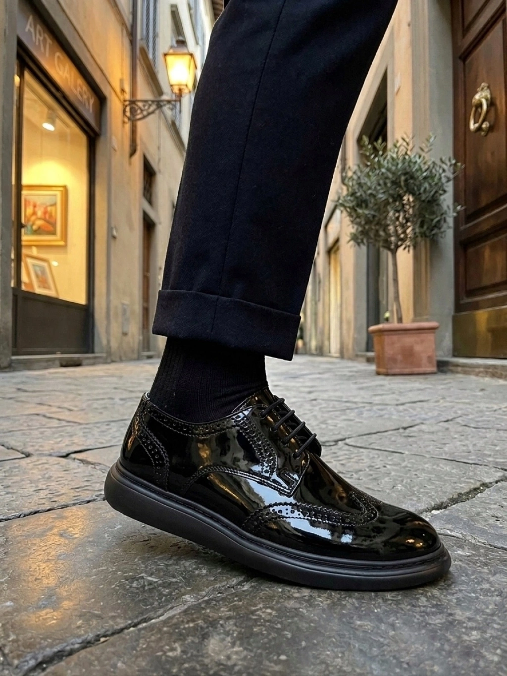 BA0003 Yeni Sezon Siyah Rugan Lüks Brouge Klasik Ayakkabı