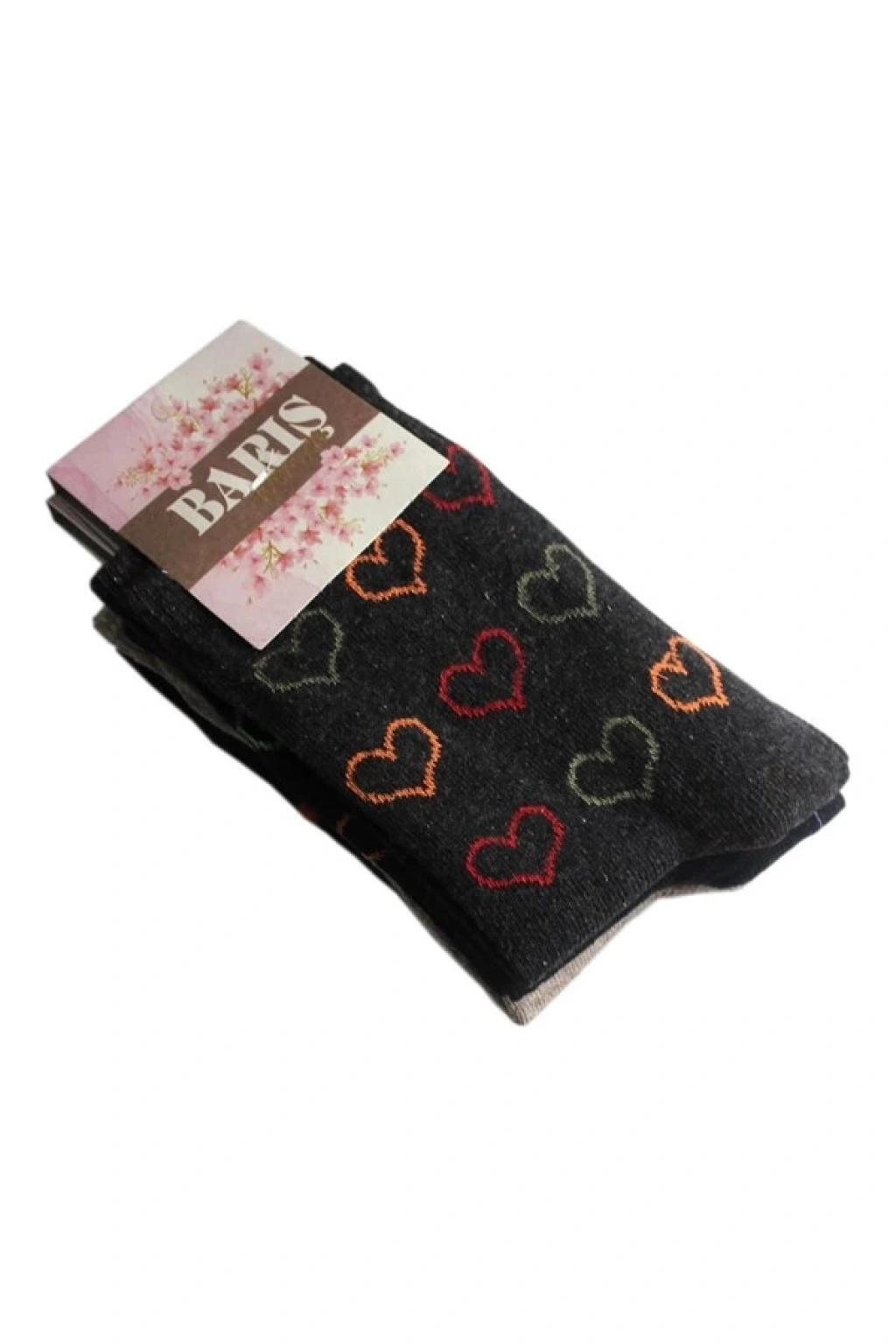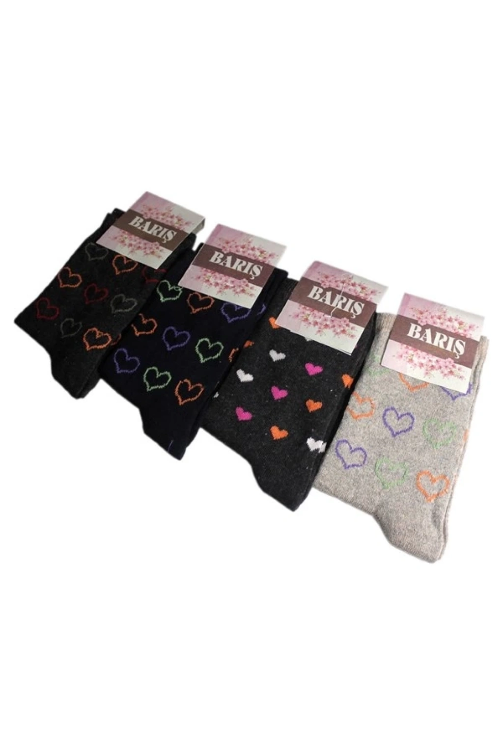 Barış Kalp Desenli Likralı Kadın Soket Çorap  3 Adet