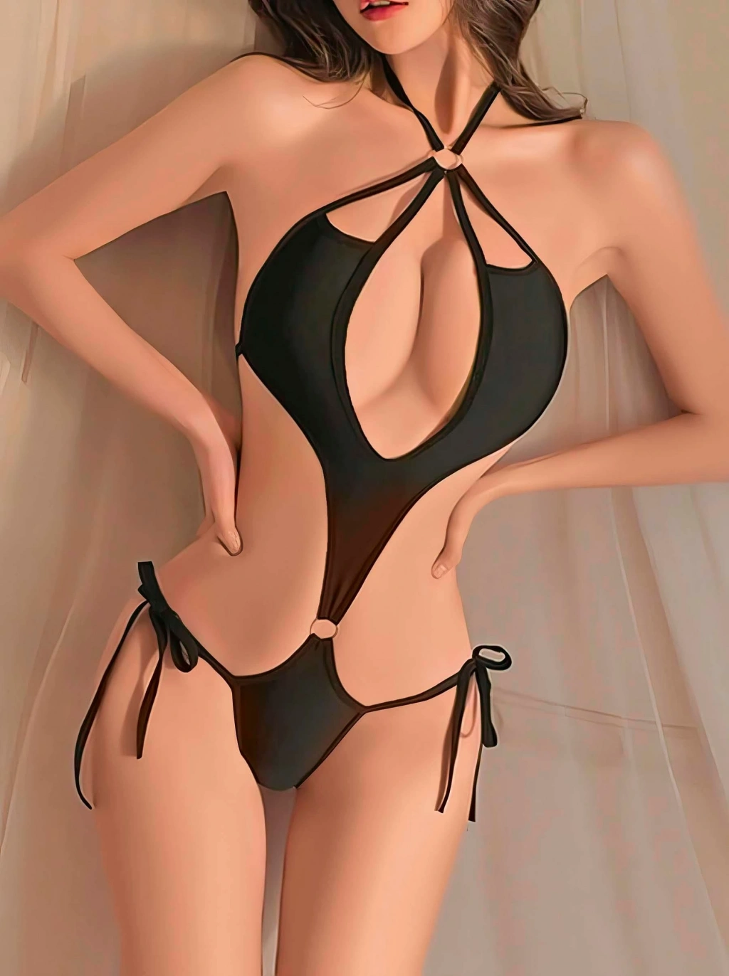 Şıklığın ve zarafetin buluştuğu bu siyah boyundan bağlamalı fantezi gecelik, özel gecelerde etkileyici bir duruş sergilemek isteyen kadınlar için tasarlandı. Transparan tül kumaşı vücut hatlarını zarifçe ortaya çıkarırken, dantel detayları romantik bir hava katar. Ayarlanabilir boyun bağı sayesinde kişiye özel konfor sunar.
