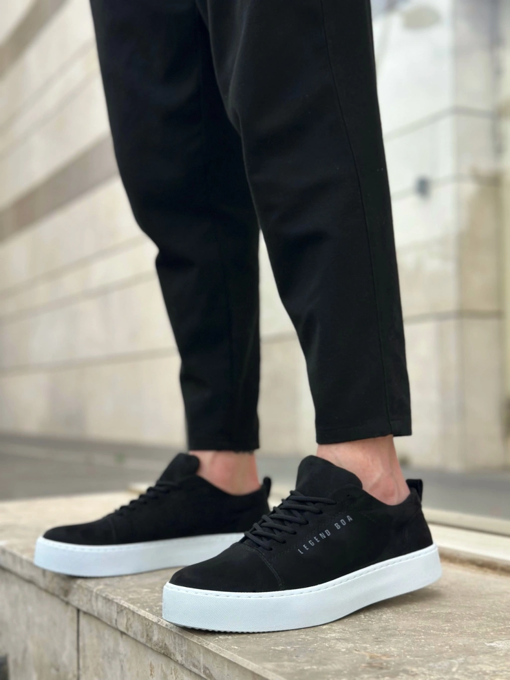 BA0104 Bağcıklı Siyah Süet Beyaz Taban Spor Klasik Erkek Ayakkabı