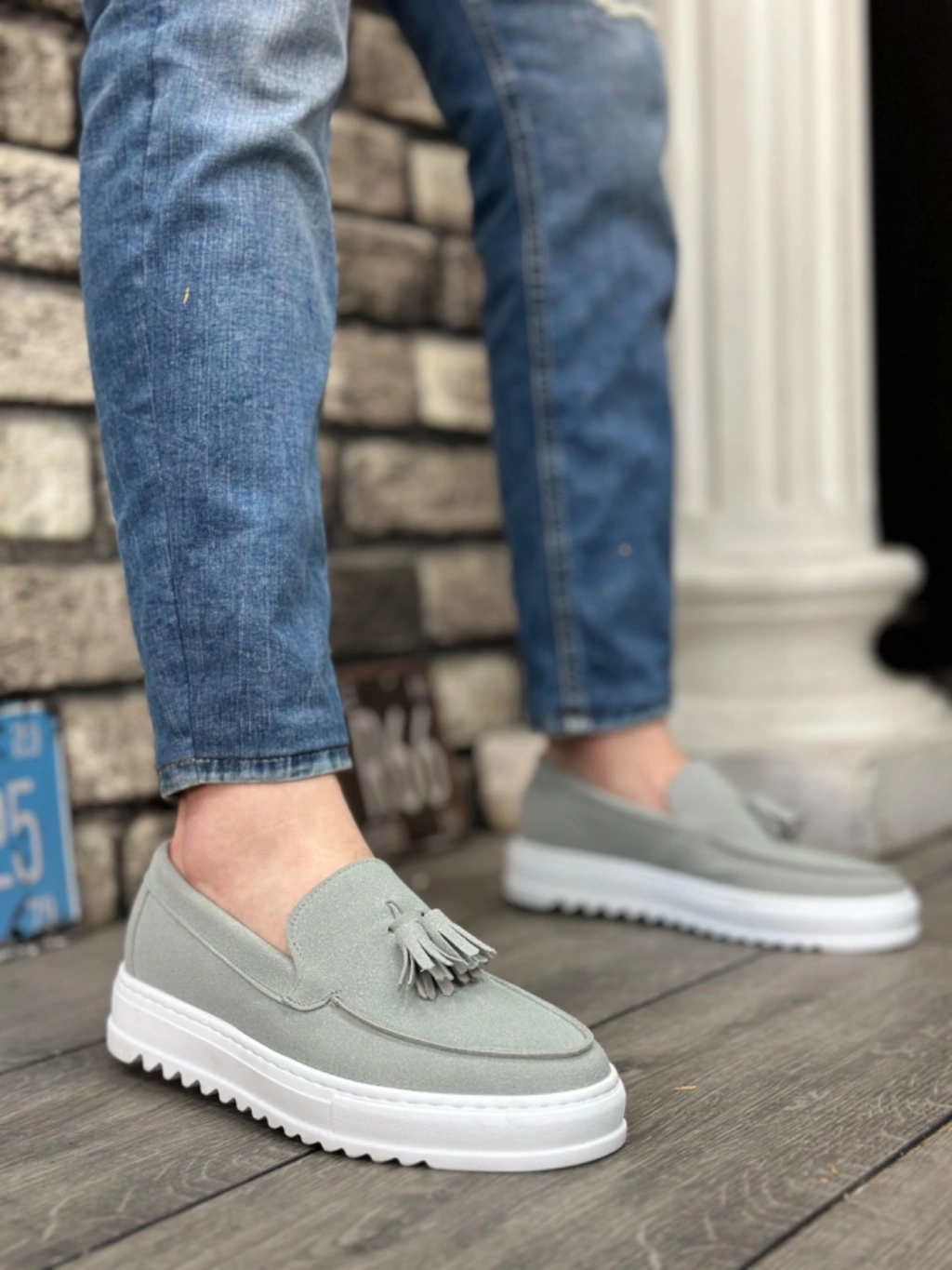 BA0154 Bağcıksız Yüksek Taban Gri Süet Püsküllü Erkek Ayakkabı