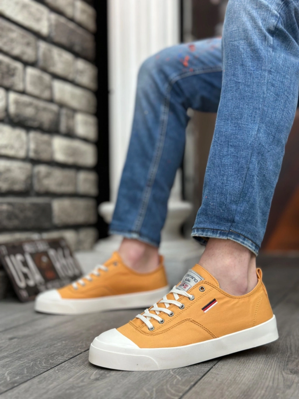 BA0223 BOA Rahat Düz Taban Keten Bağcıklı Sarı Günlük Erkek Ayakkabı