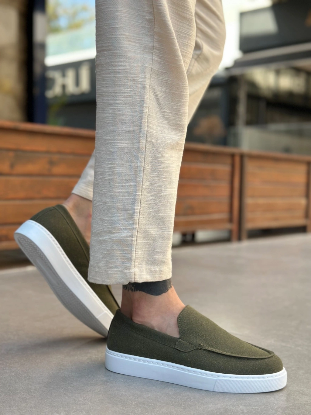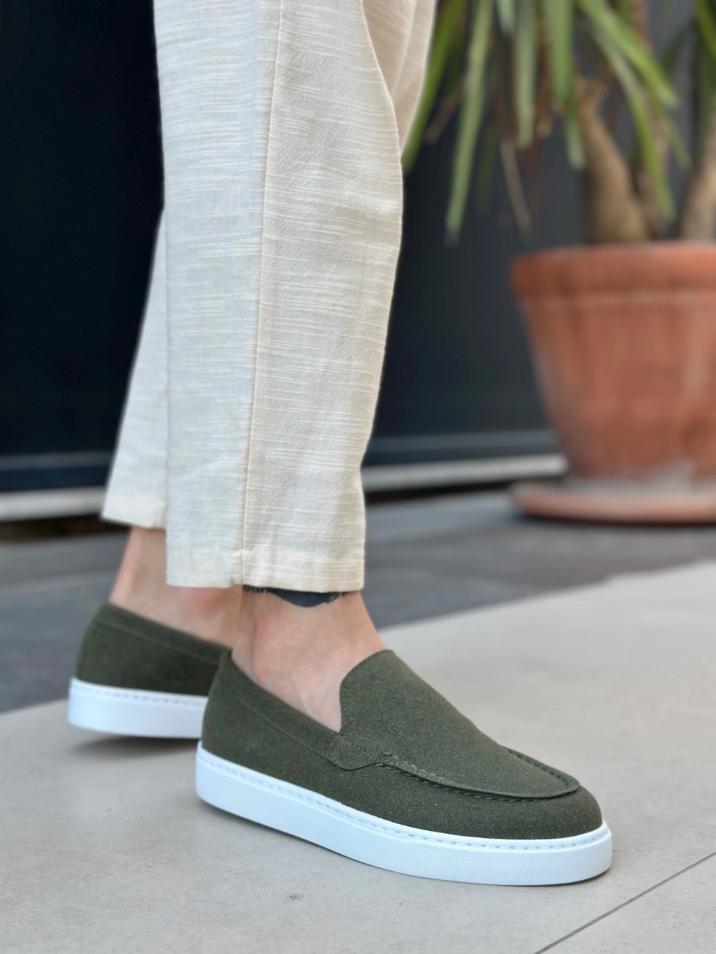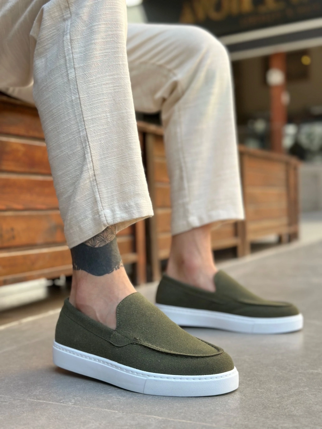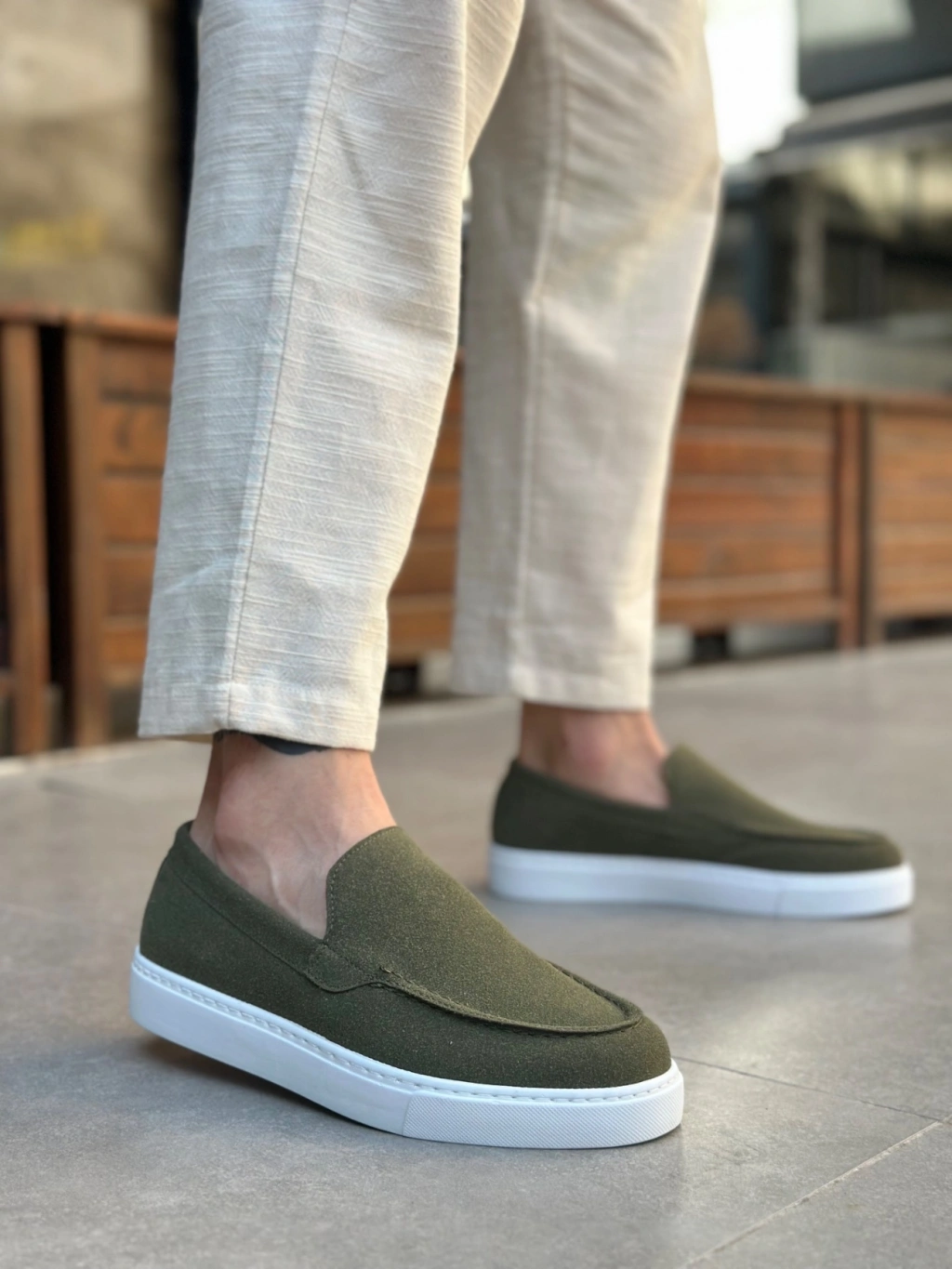 BA0241 Bağcıksız Yüksek Taban Haki Süet Erkek Ayakkabı