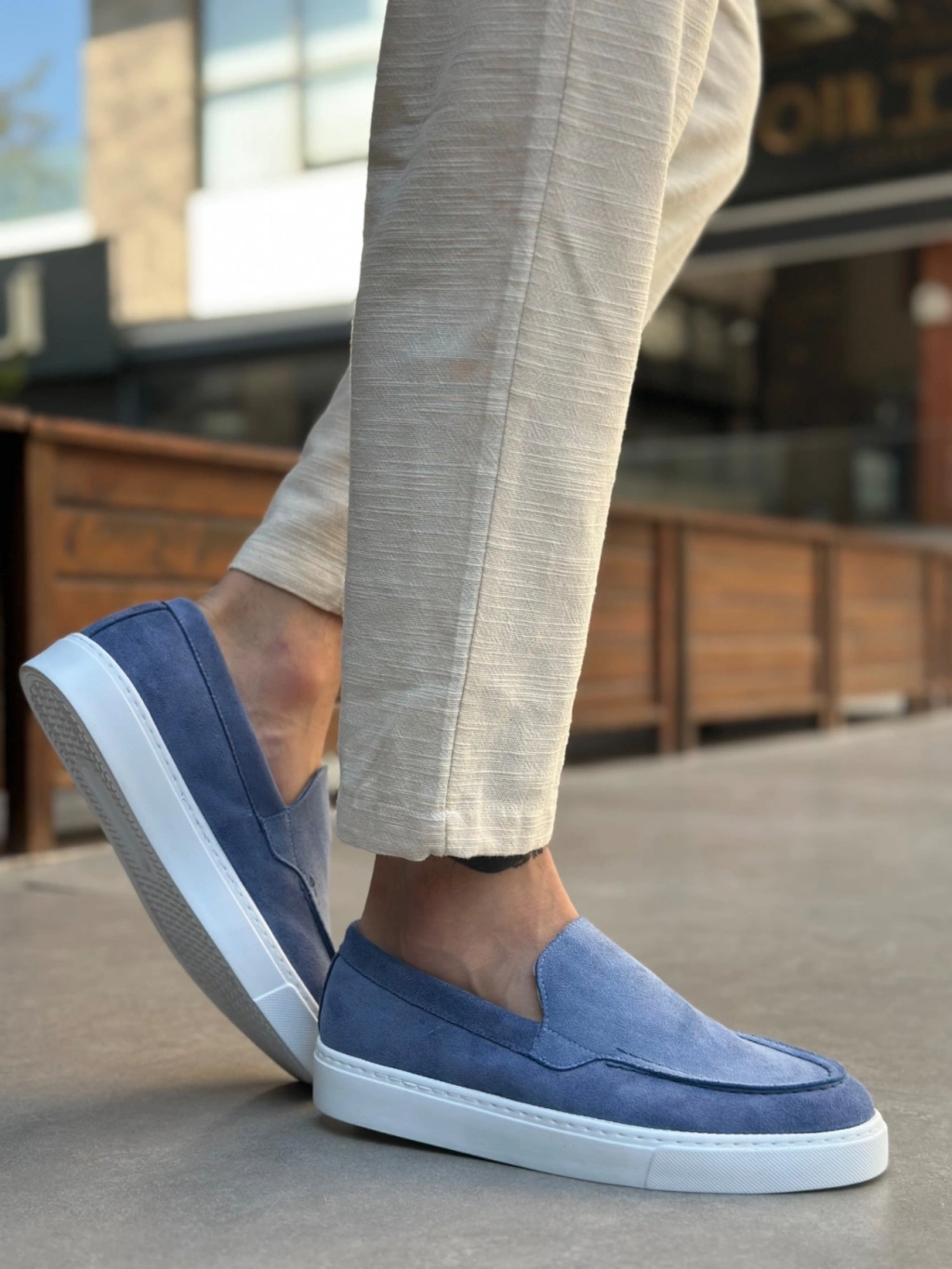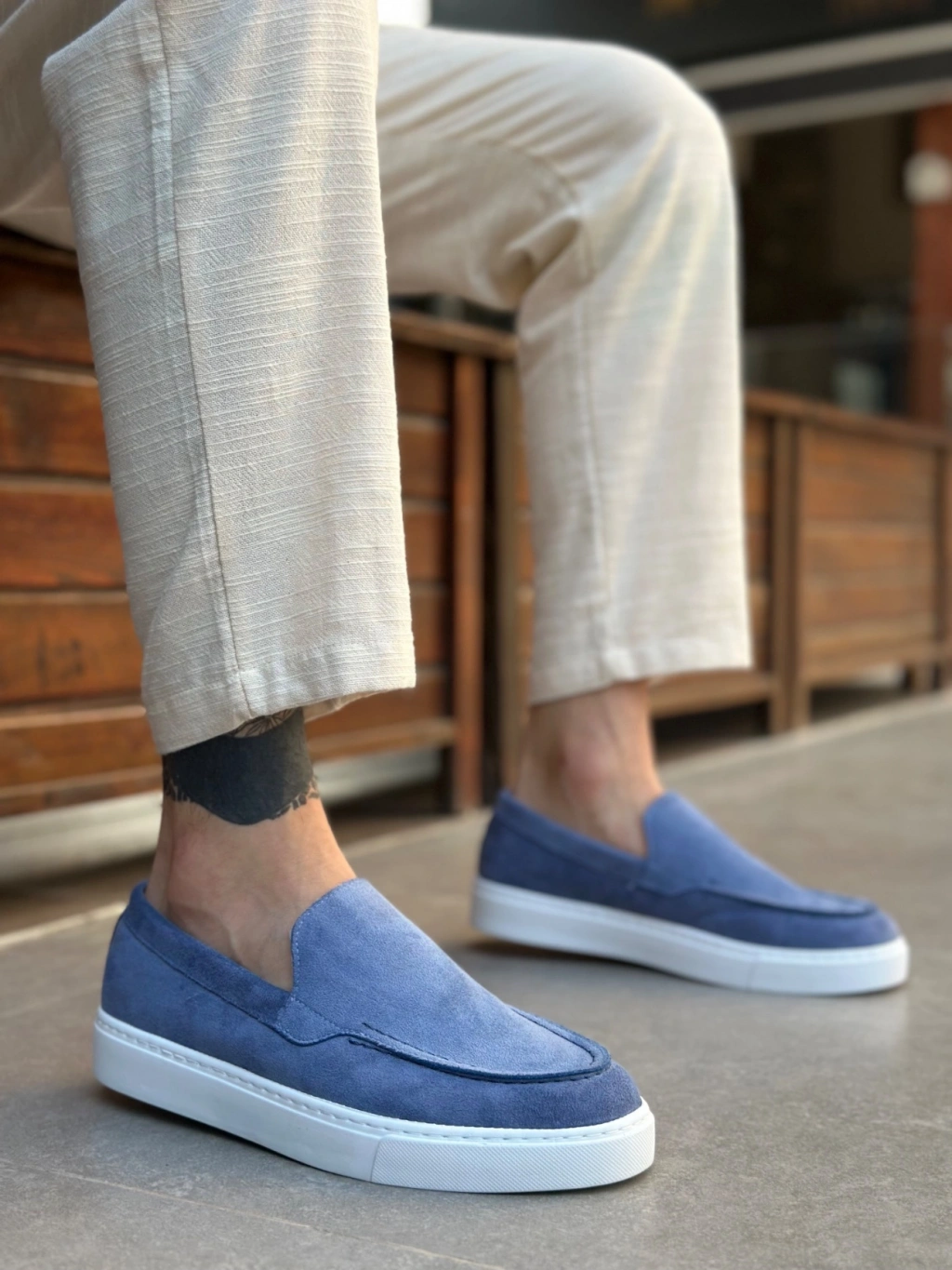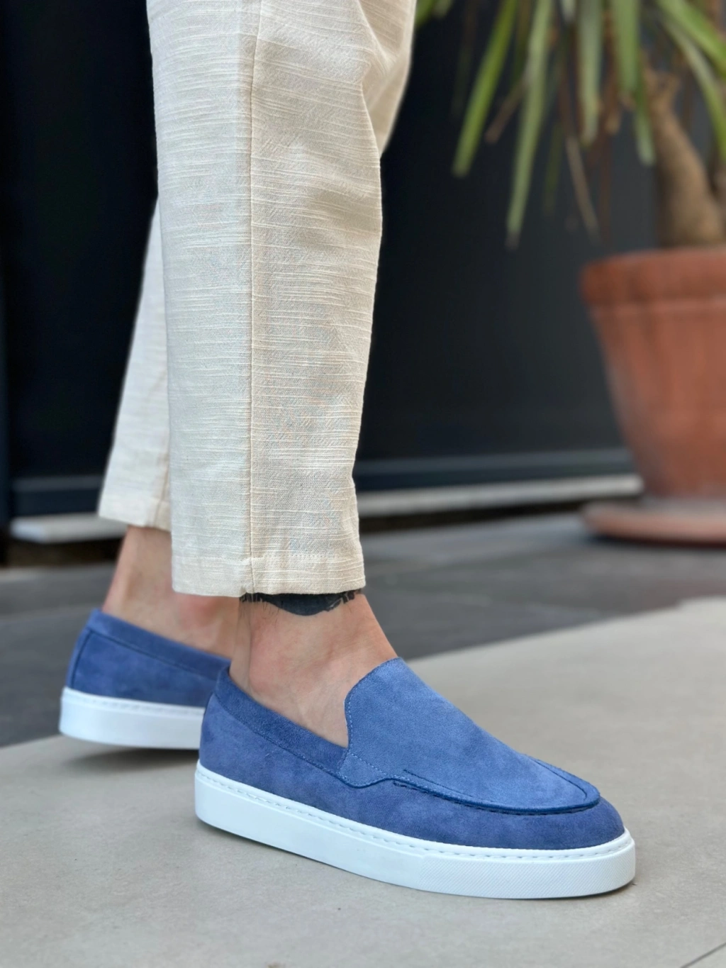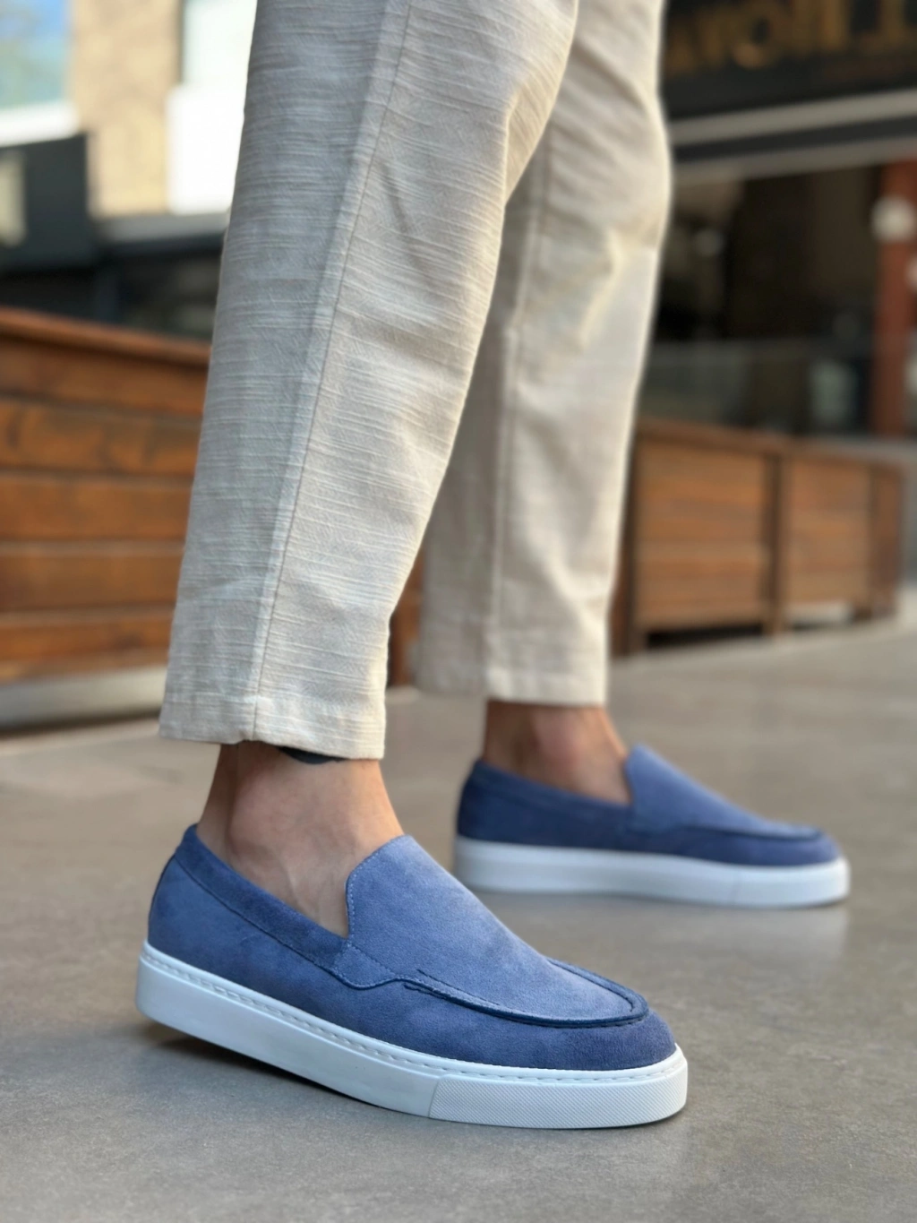 BA0241 Bağcıksız Yüksek Taban Mavi Süet Erkek Ayakkabı