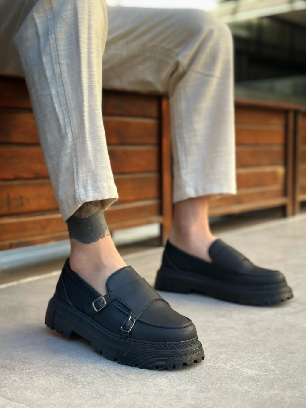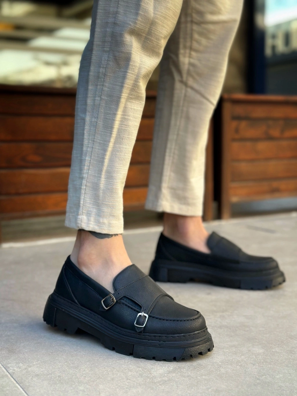 BA0242 Tokalı Klasik Yüksek Siyah Taban Erkek Ayakkabı