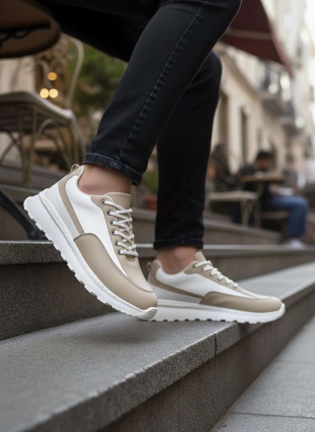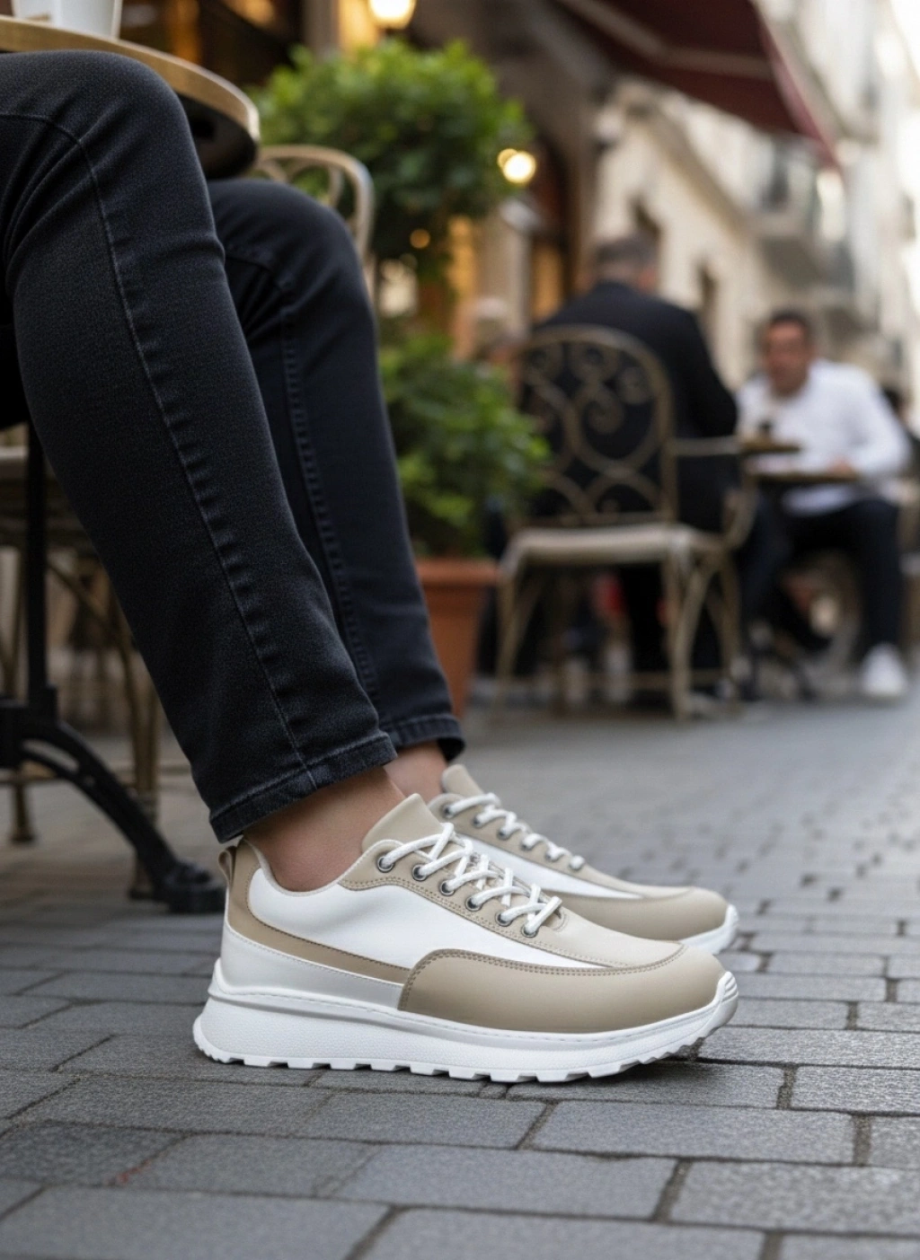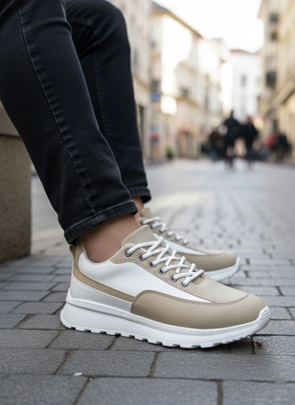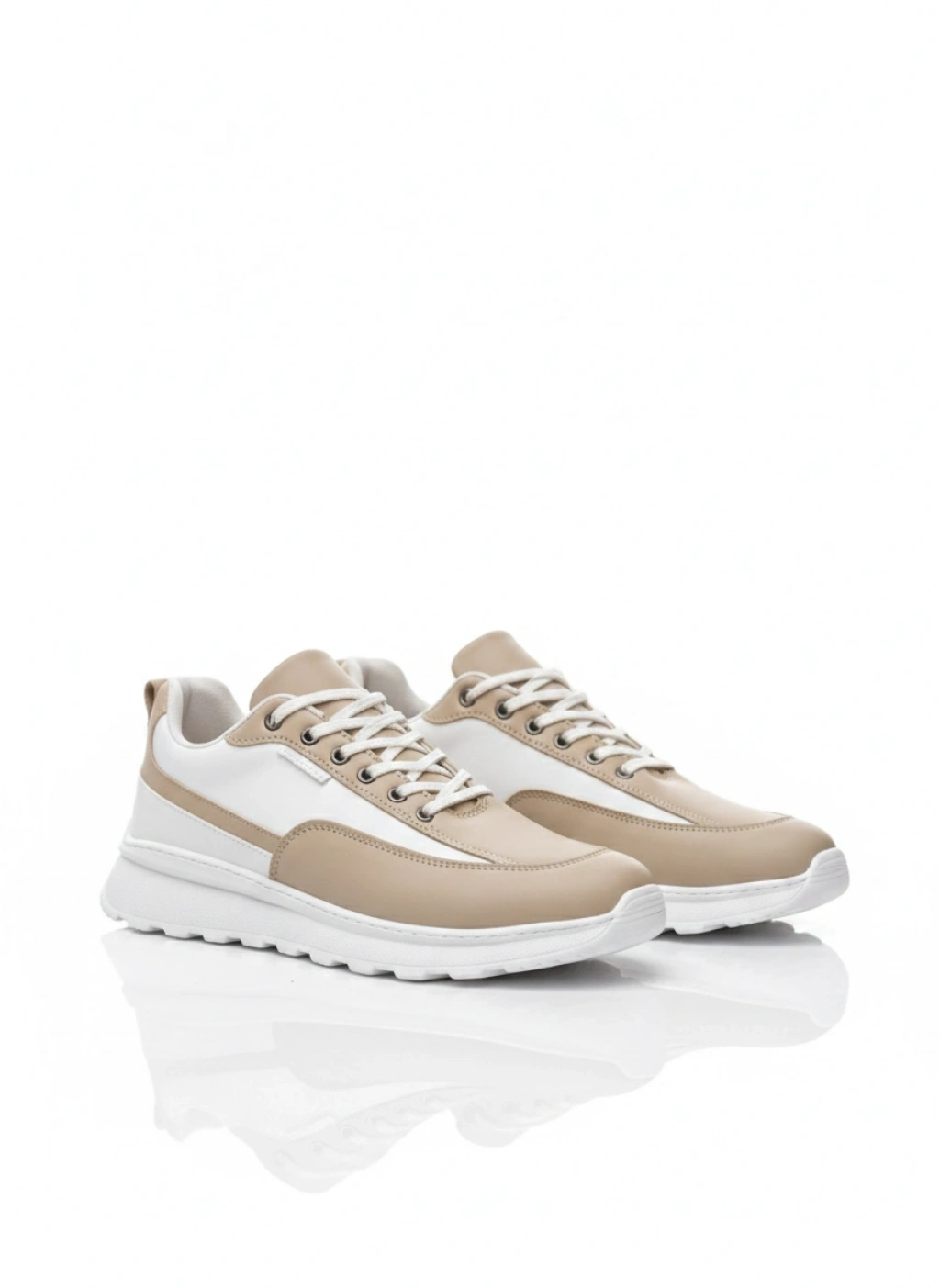 BA0246 Krem Bağcıklı Yüksek Beyaz Taban Günlük Erkek Ayakkabı
