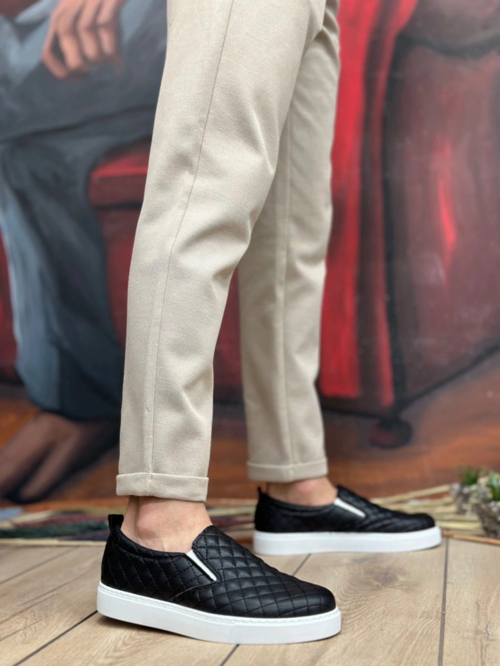 BA0353 Bağcıksız Kapitone Siyah Beyaz Taban Günlük Erkek Ayakkabı