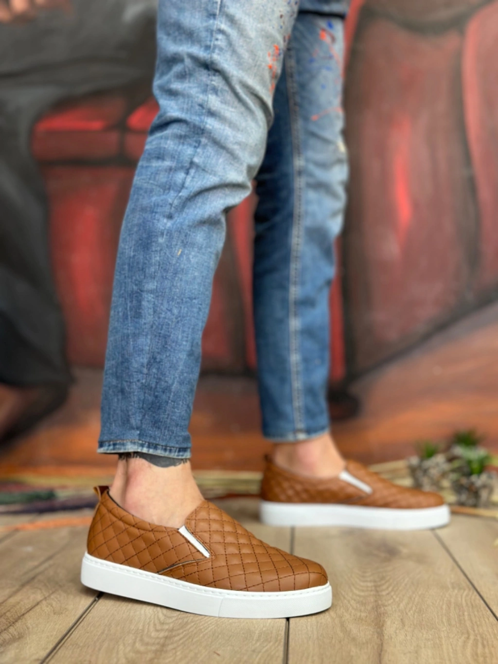 BA0353 Bağcıksız Kapitone Taba Günlük Erkek Ayakkabı
