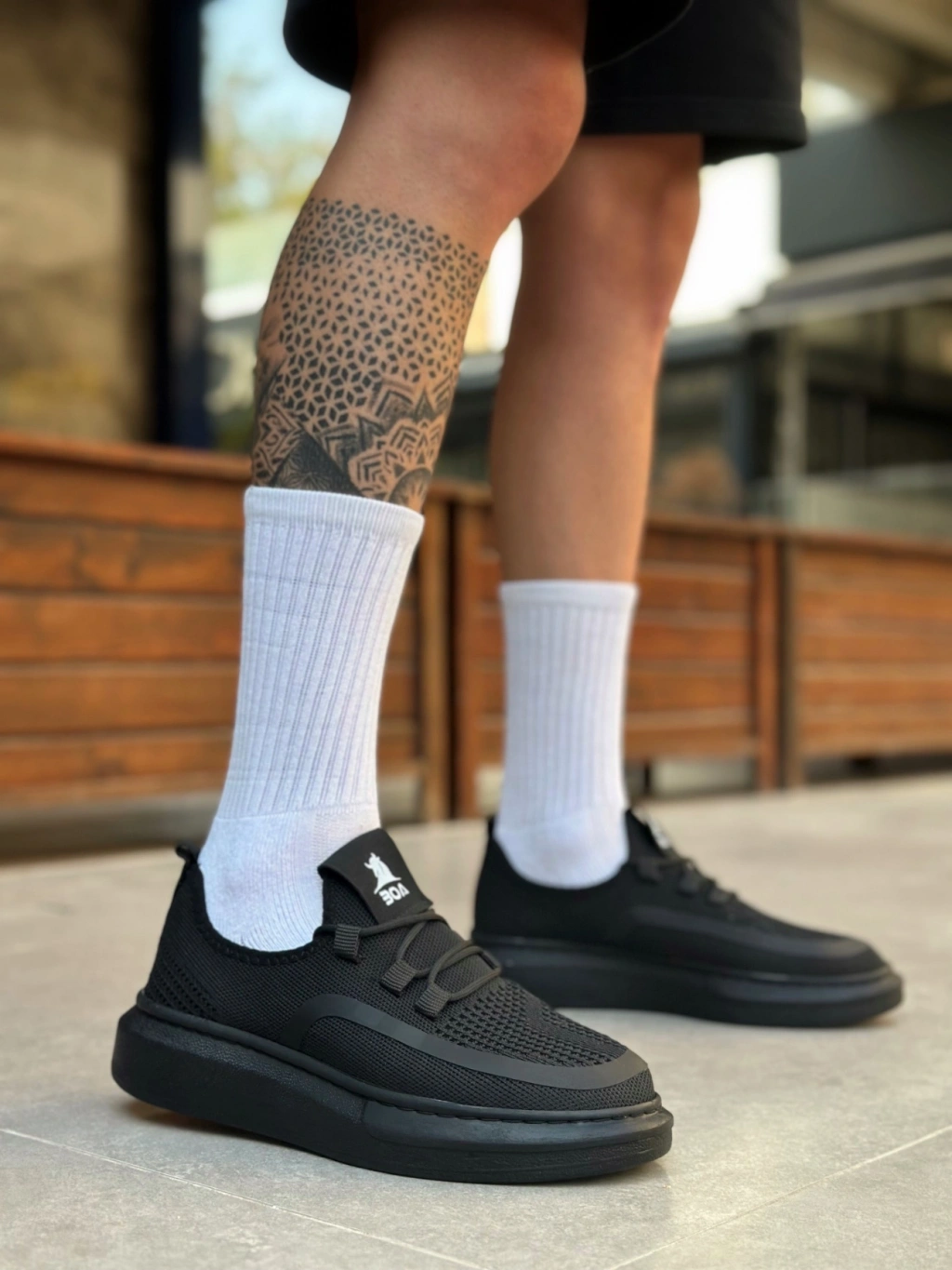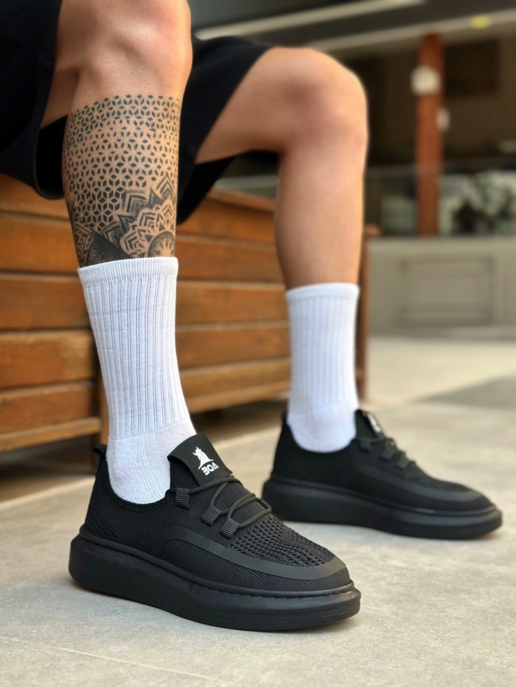 BA0375 Özel Örme Triko Tarz Siyah Renk Siyah Taban Spor Ayakkabı