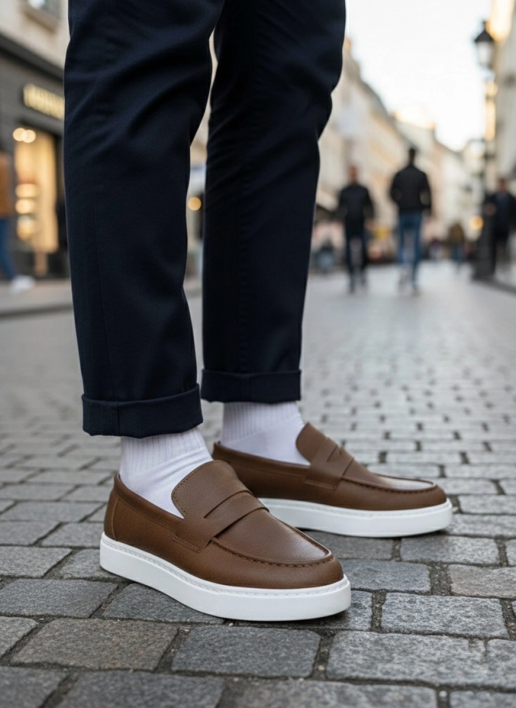 BA0580 Bağcıksız Kuşaklı Yüksek Taban Taba Cilt Erkek Ayakkabı