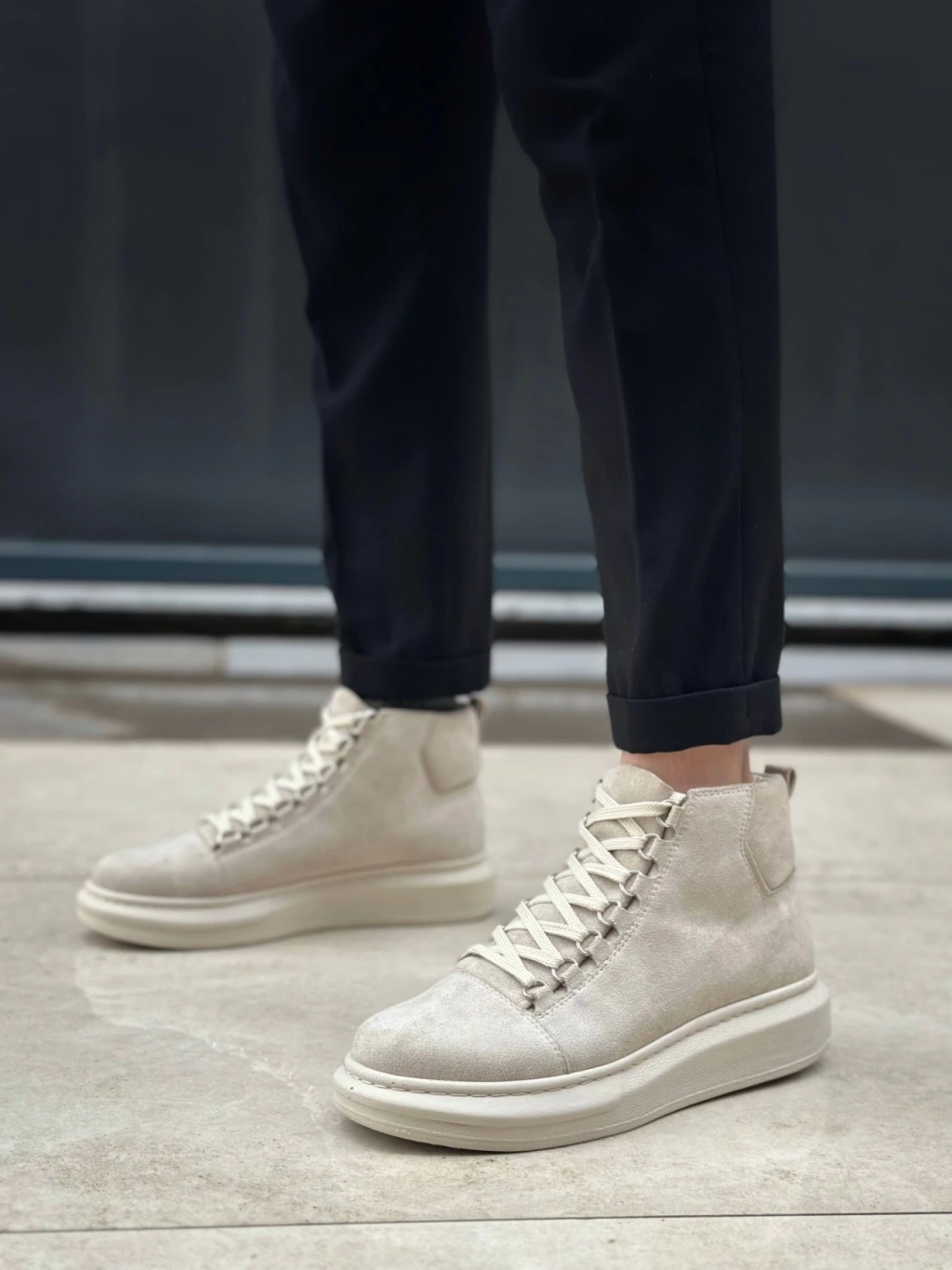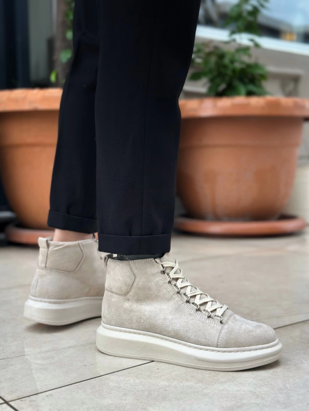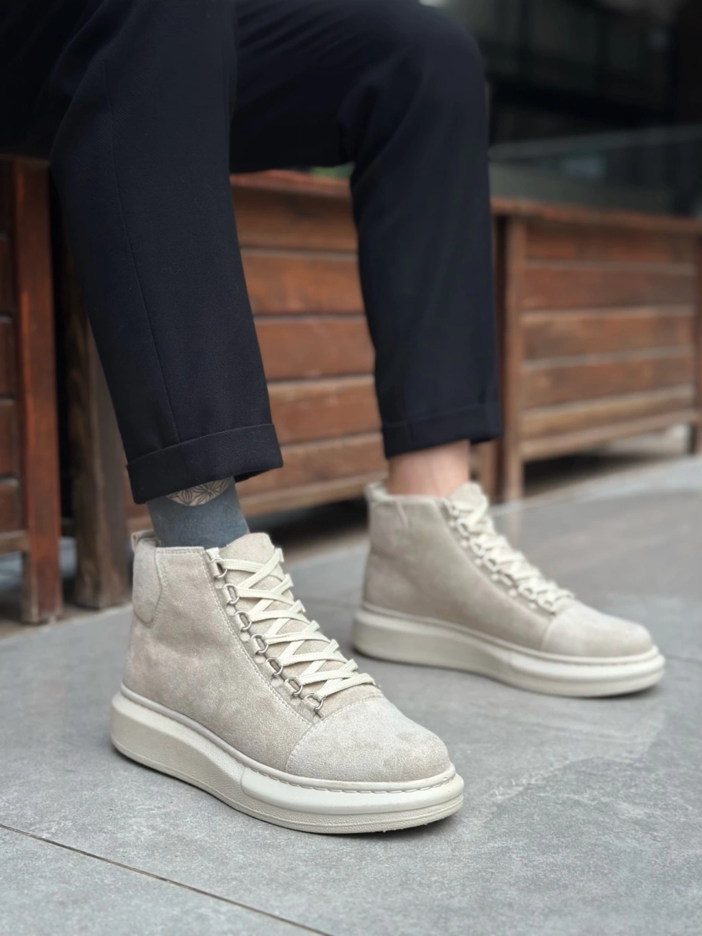 BA0713 Bağcıklı Süet Bej Yüksek Taban Erkek Tarz Spor Bot