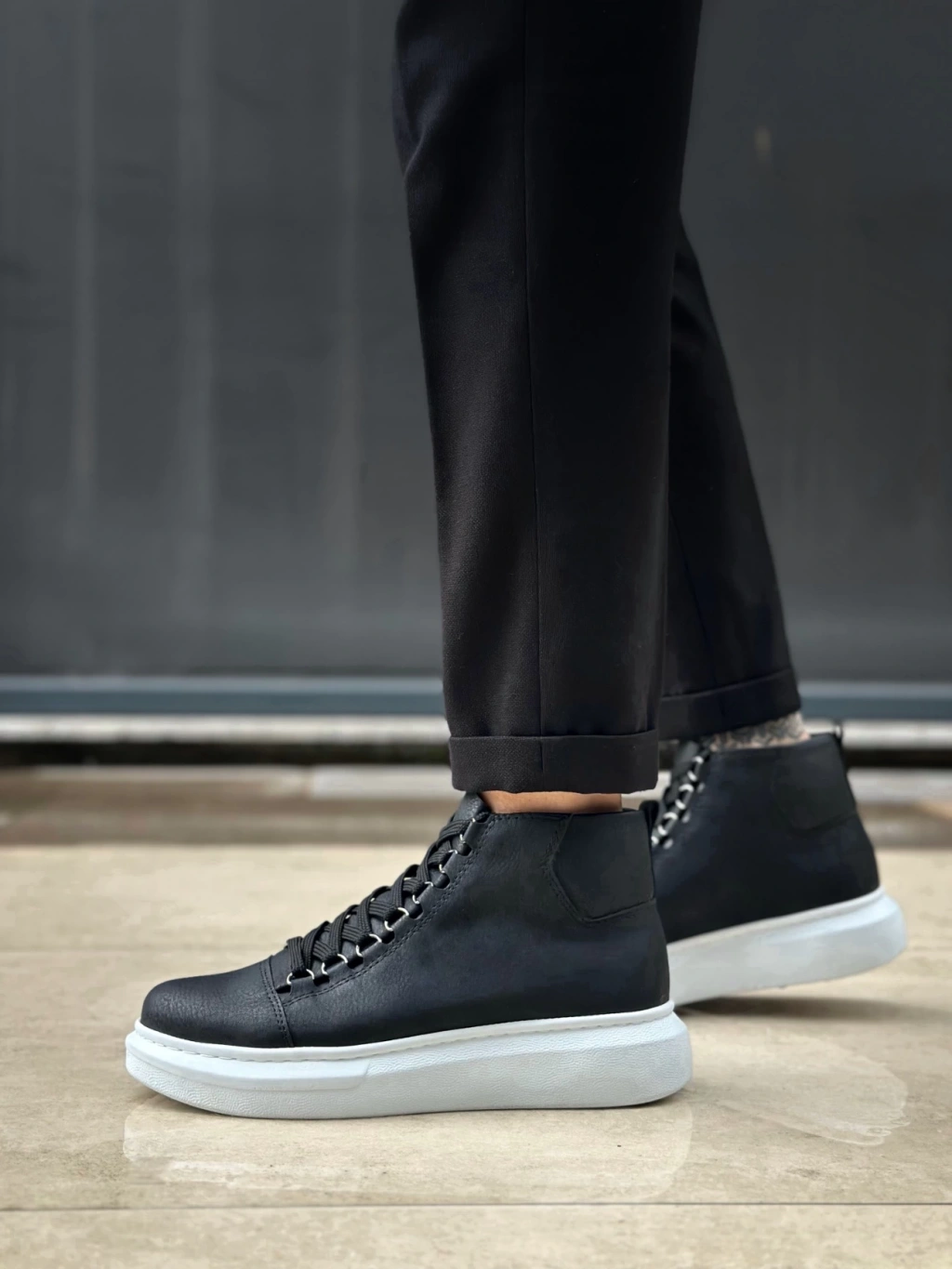BA0713 Bağcıklı Yüksek Siyah Beyaz Taban Erkek Tarz Spor Bot