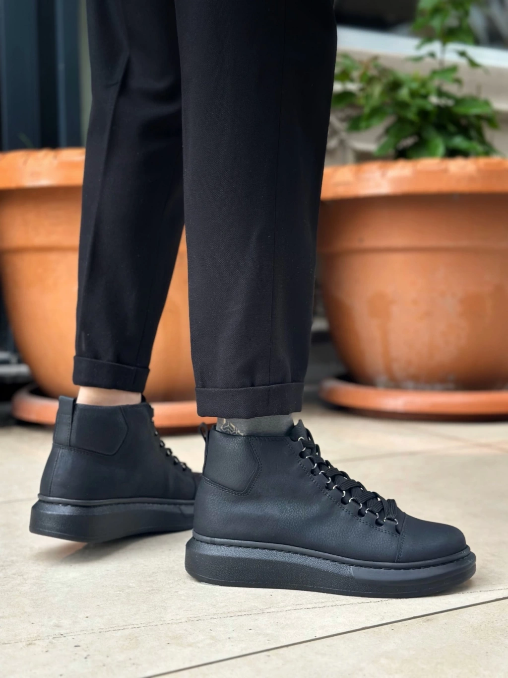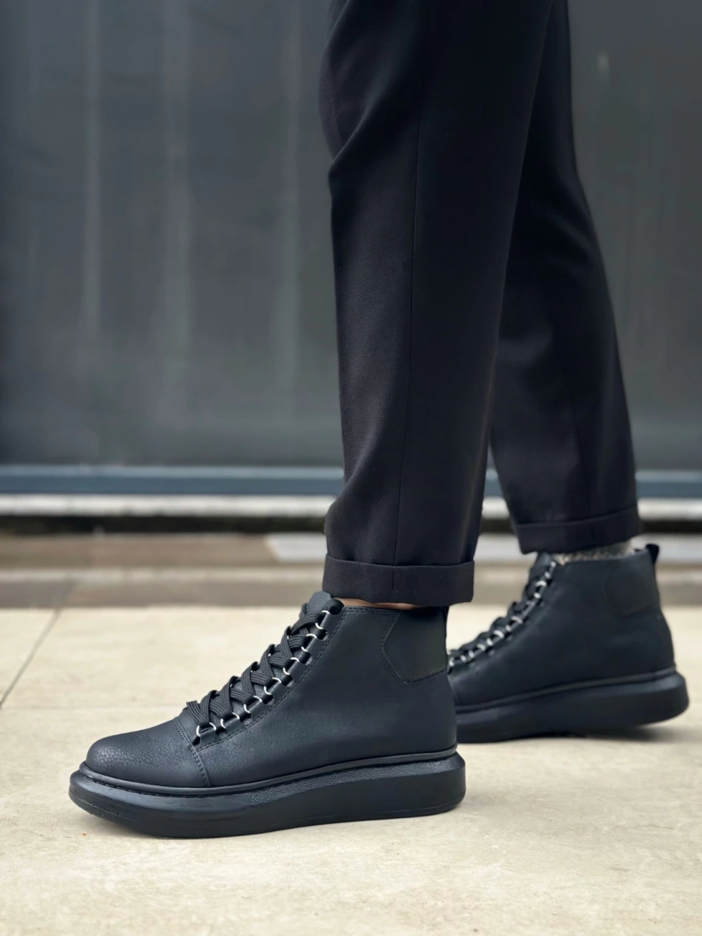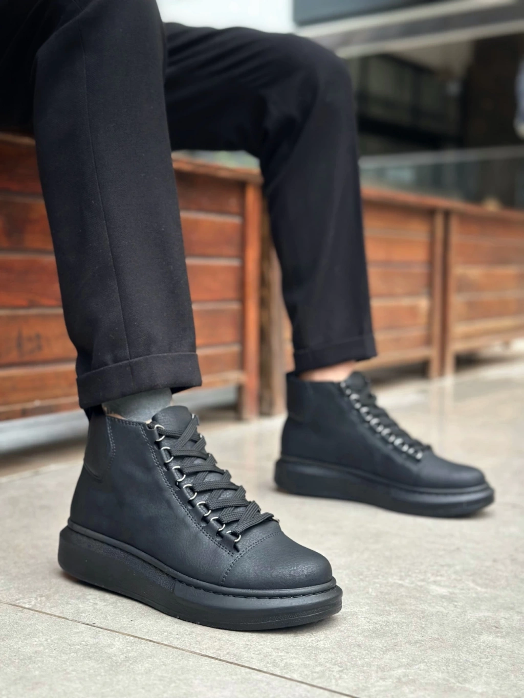 BA0713 Bağcıklı Yüksek Siyah Taban Erkek Tarz Spor Bot