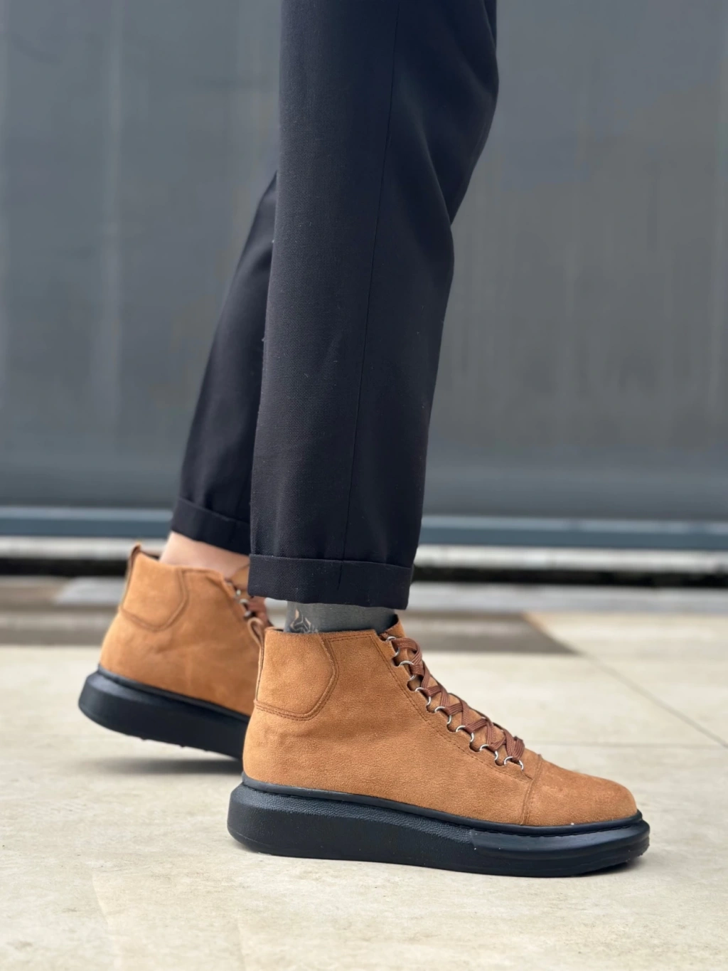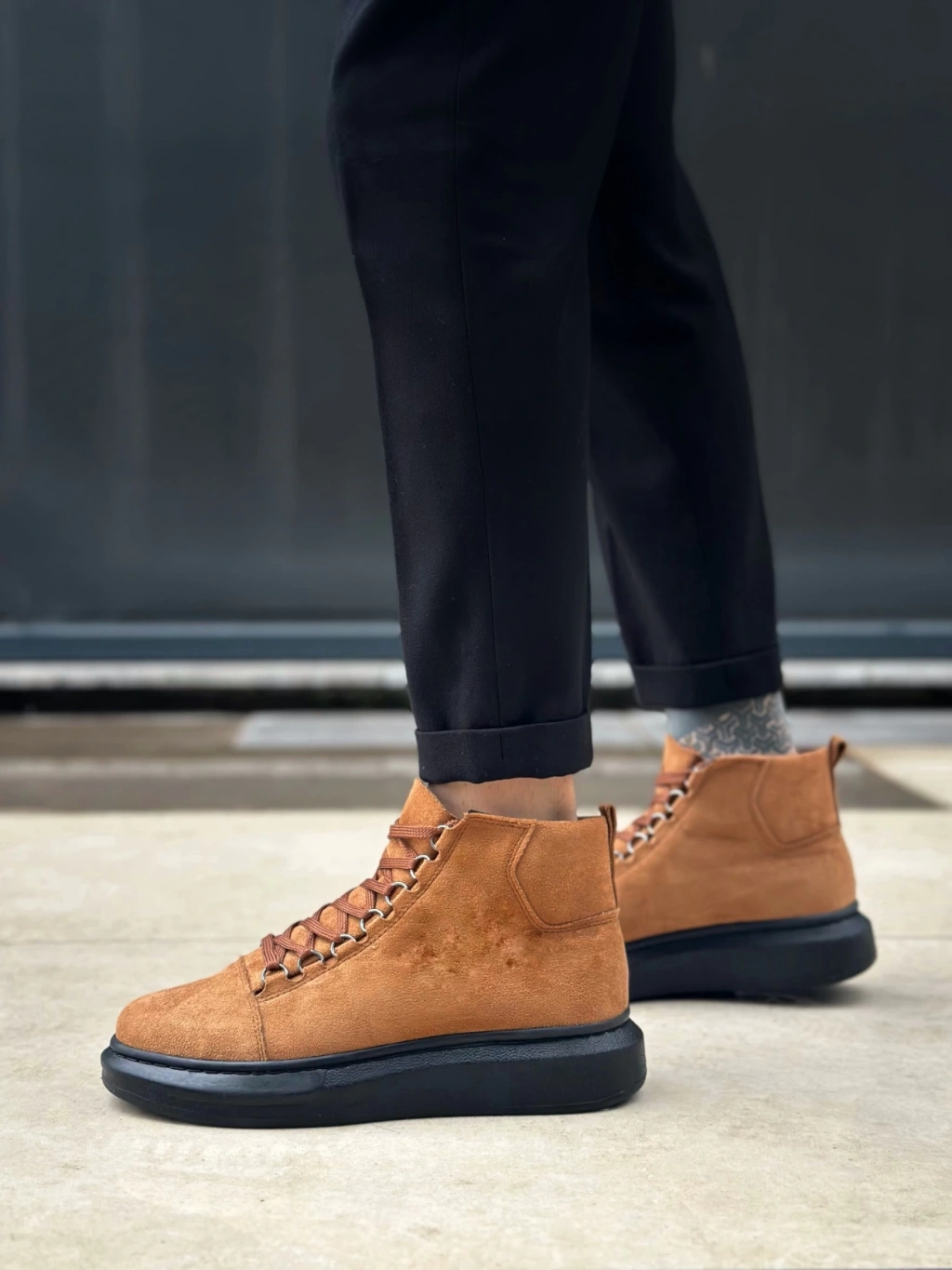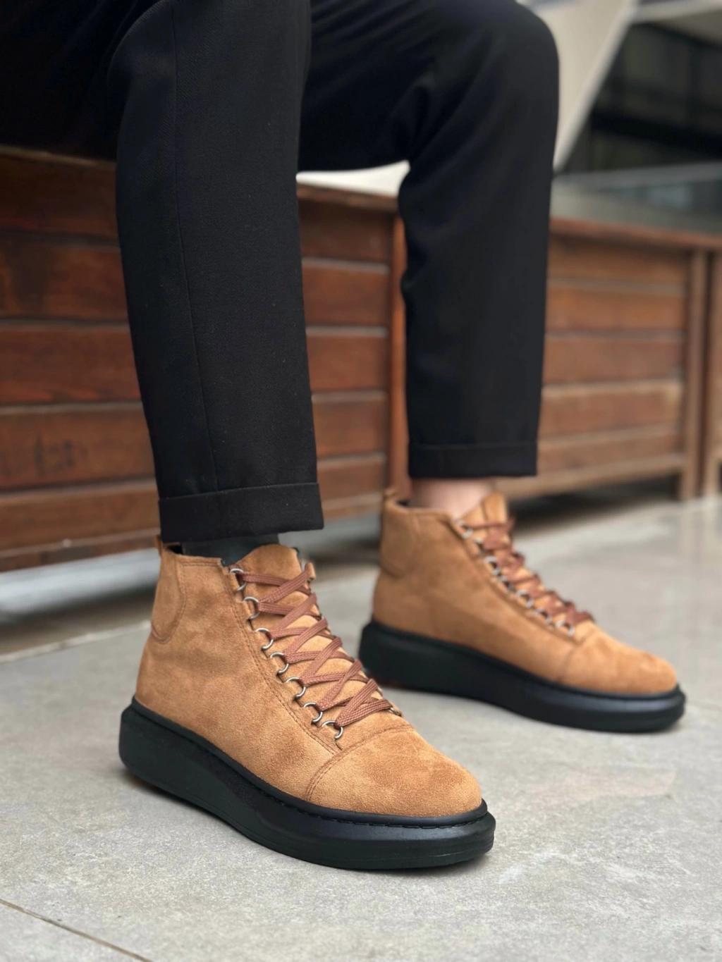 BA0713 Bağcıklı Yüksek Taba Süet Siyah Taban Erkek Tarz Spor Bot