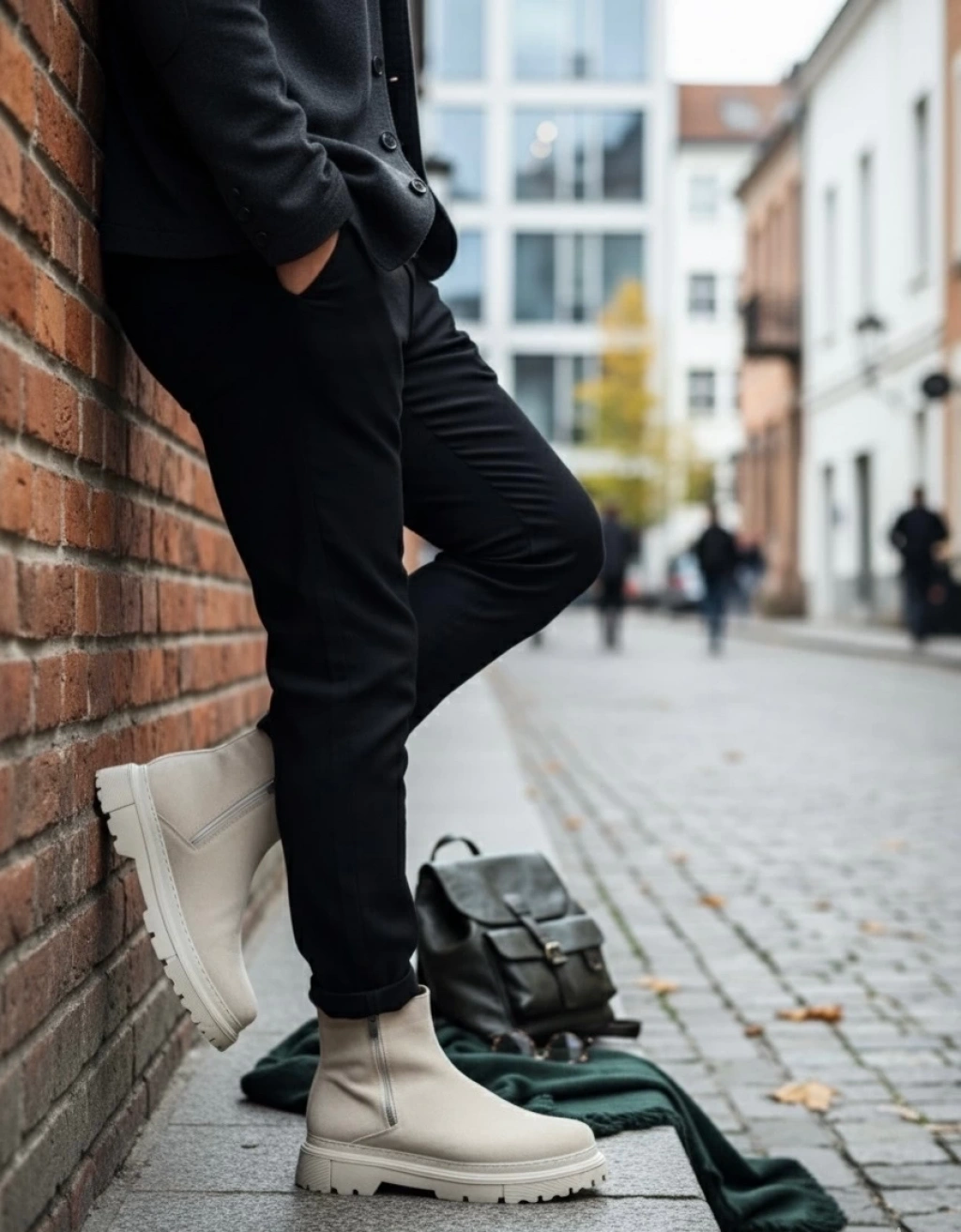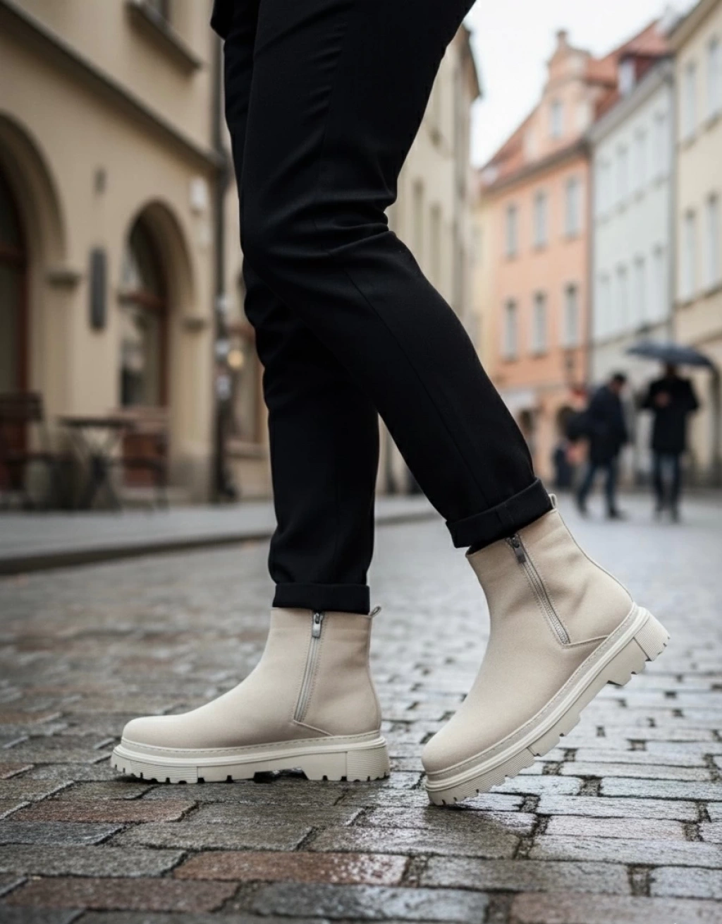 BA0777 Süet Bej Çift Fermuarlı Erkek Yarım Bilek Bot