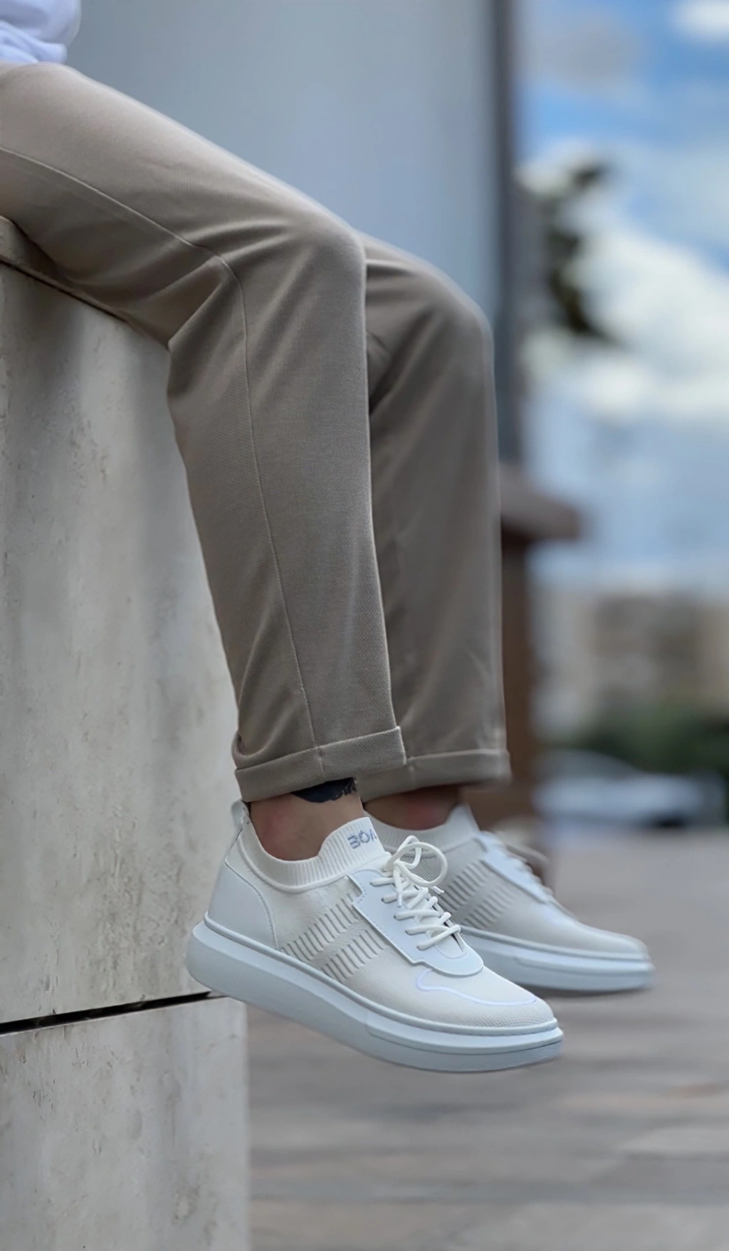 BA0812 Özel Örme Triko Tarz Beyaz Renk Spor Ayakkabı