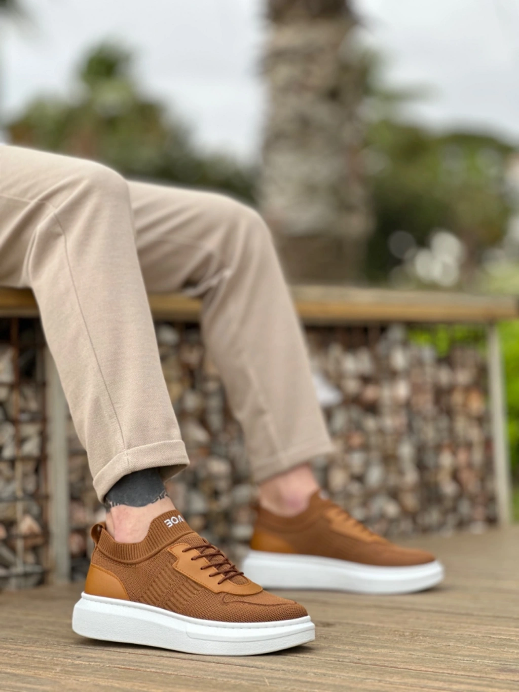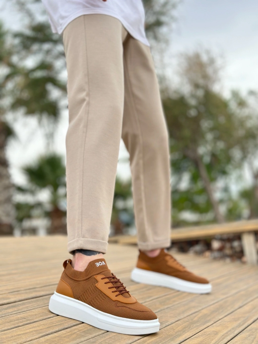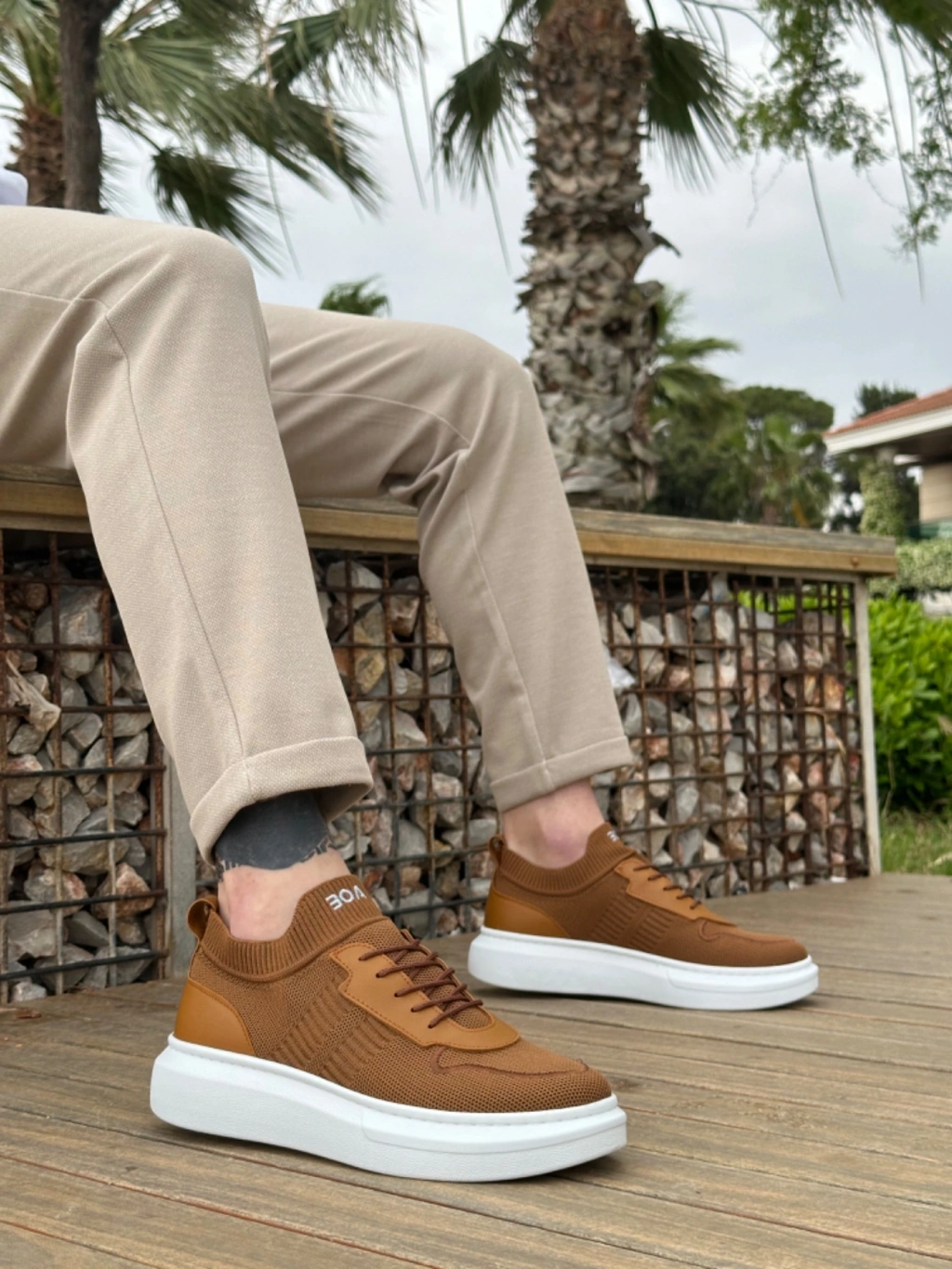 BA0812 Özel Örme Triko Tarz Taba Renk Spor Ayakkabı