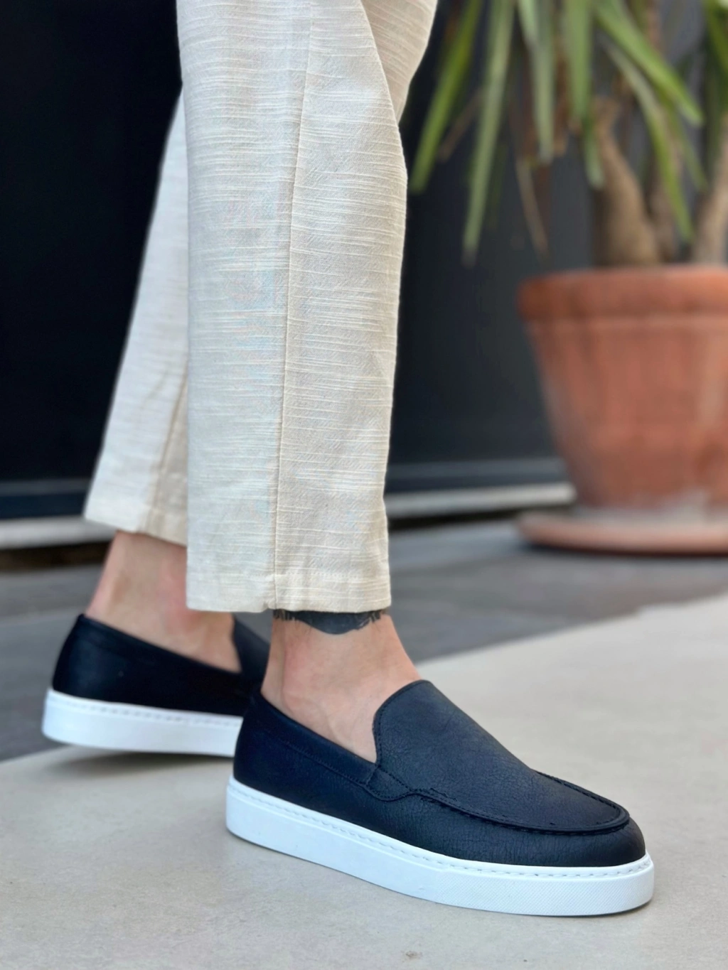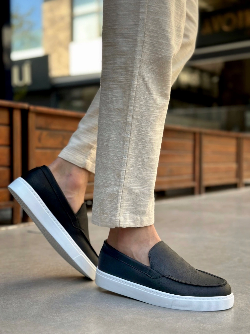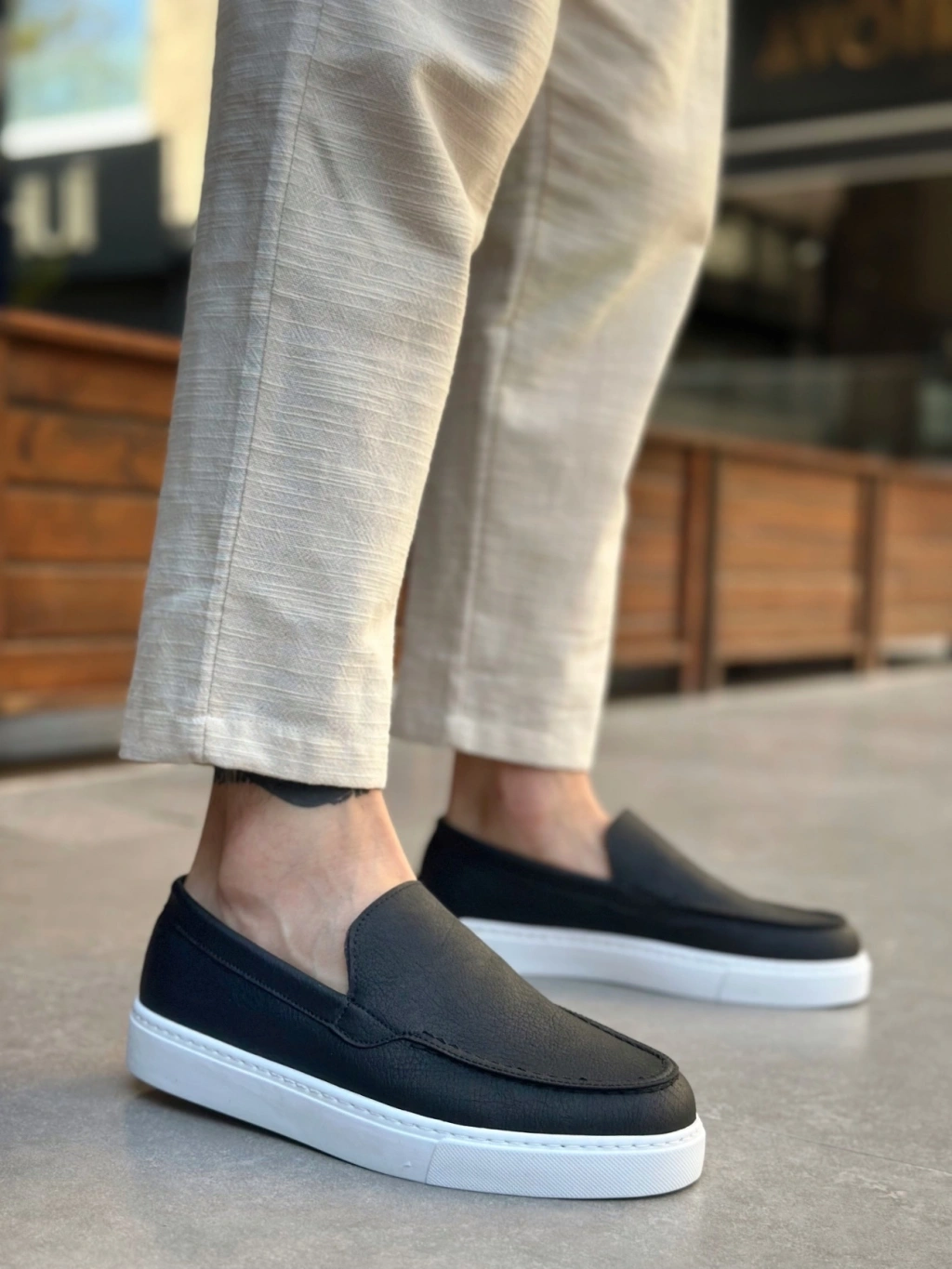 BA0241 Bağcıksız Yüksek Taban Siyah Beyaz Taban Cilt Erkek Ayakkabı
