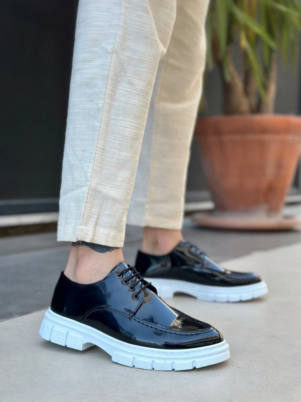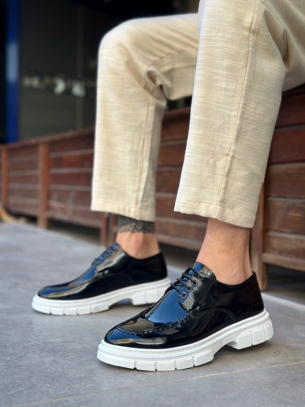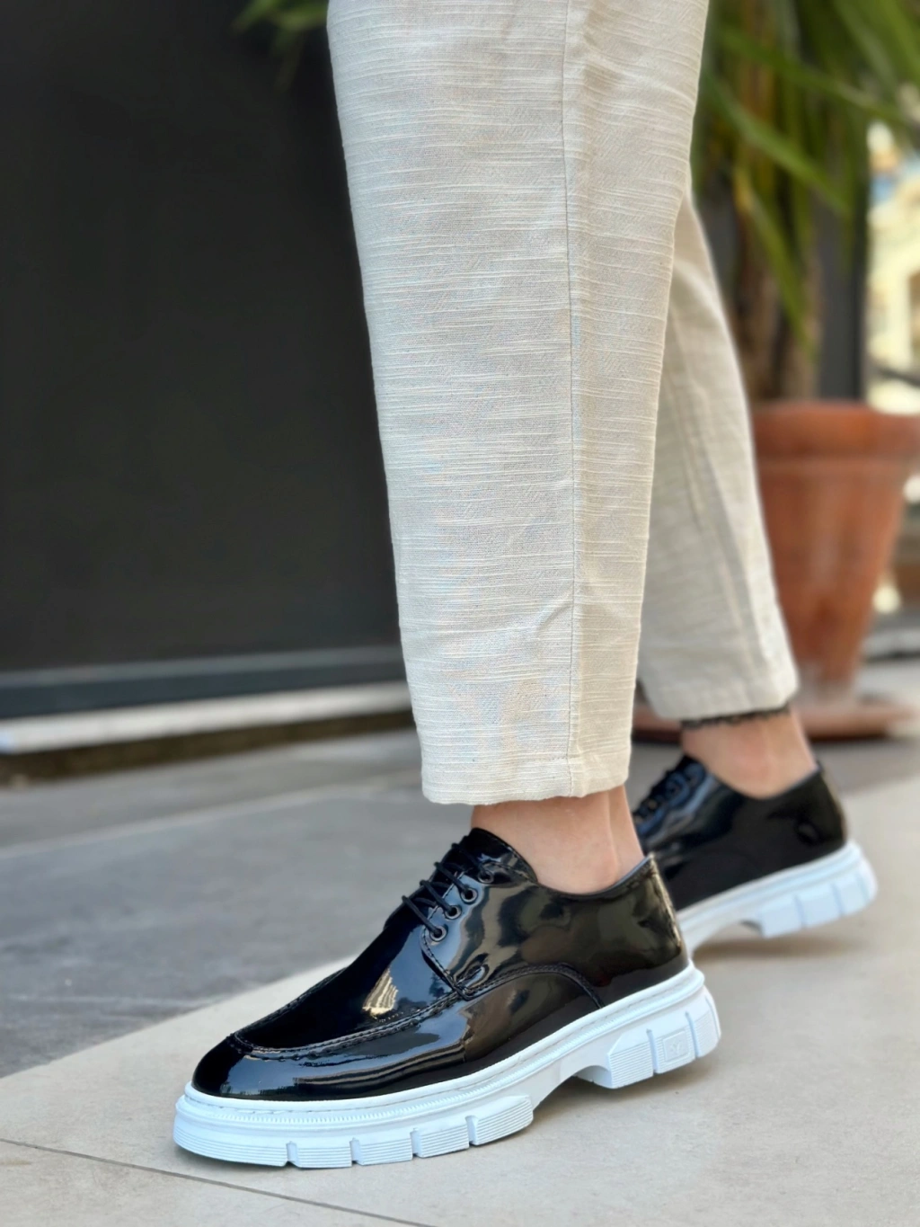 BA0237 Bağcıklı Rugan Klasik Yüksek Taban Siyah Casual Erkek Ayakkabı