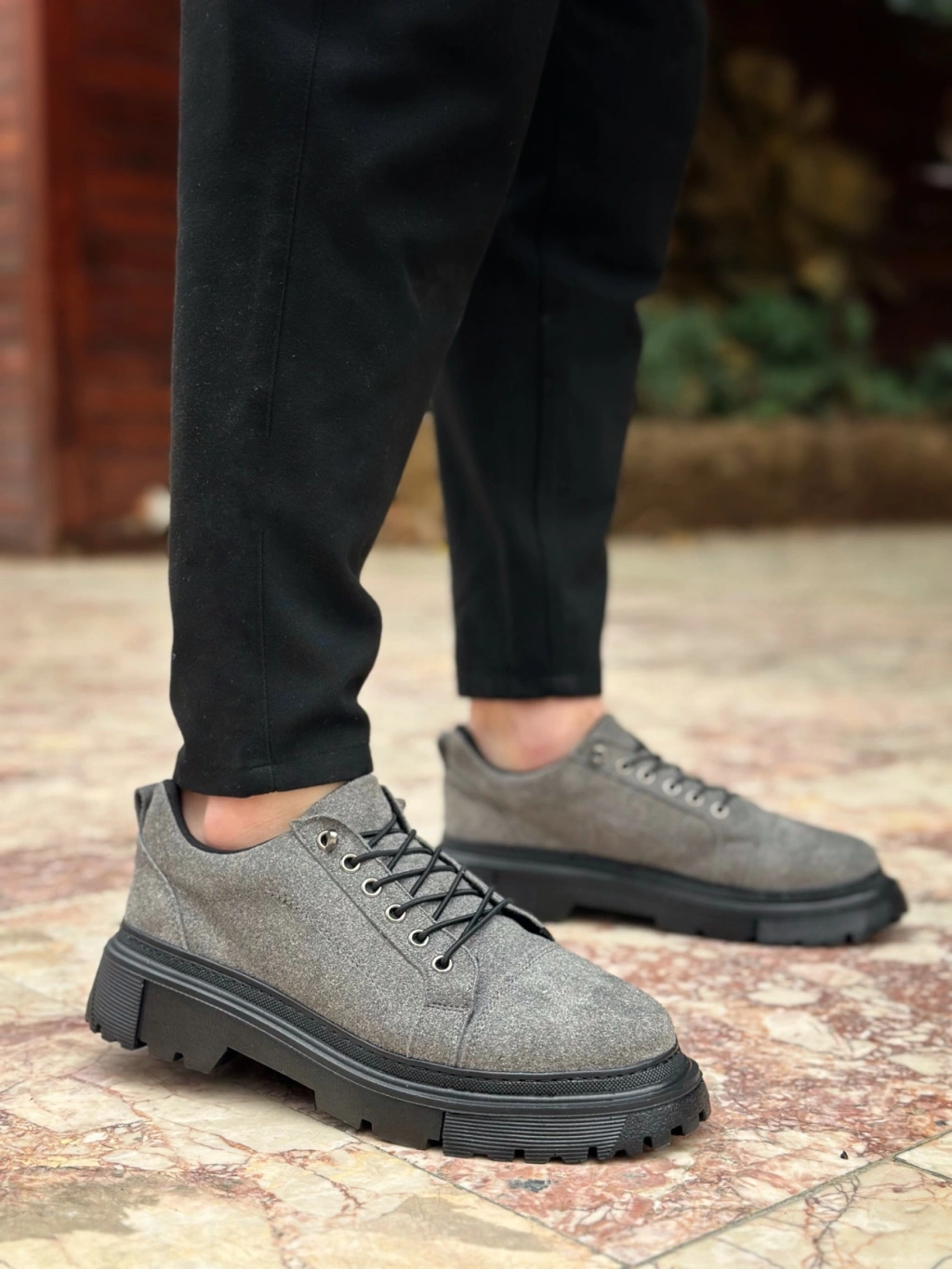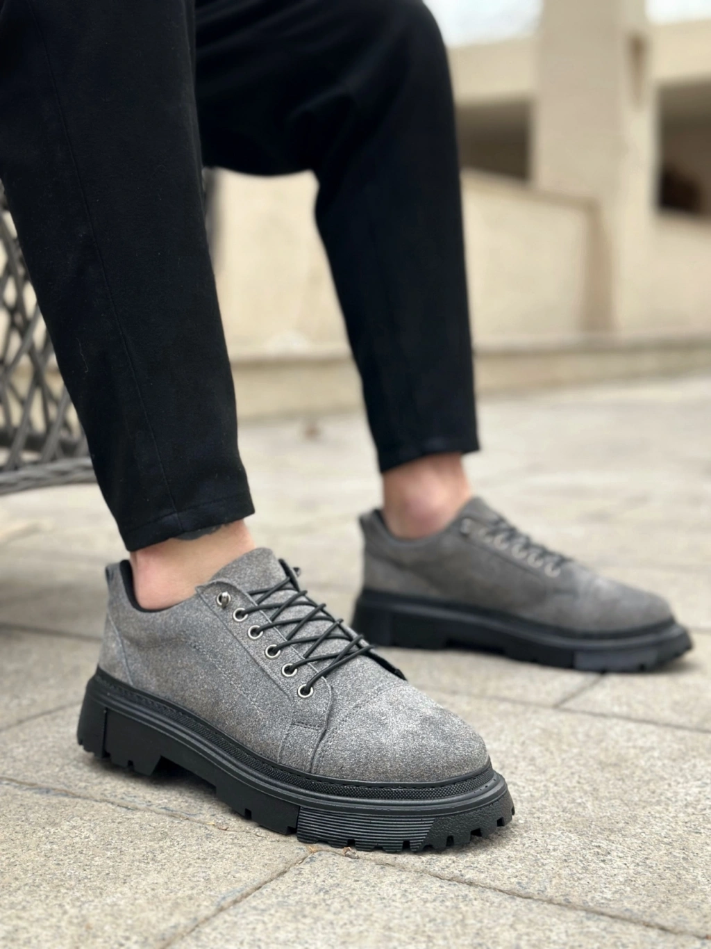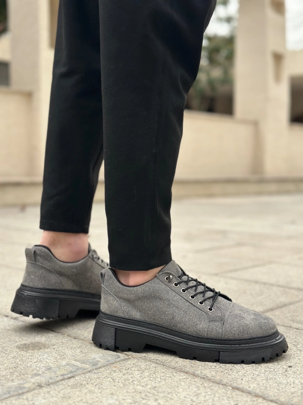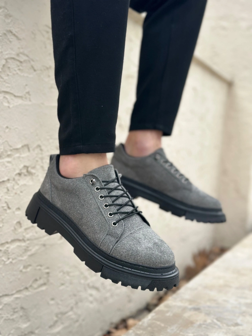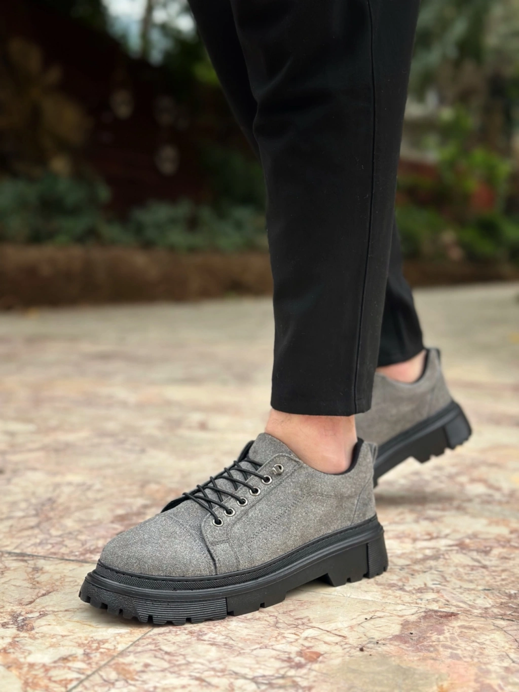 BA0245 Gri Süet Akıllı Lastik Bağcık Yüksek Taban Günlük Erkek Ayakkabı