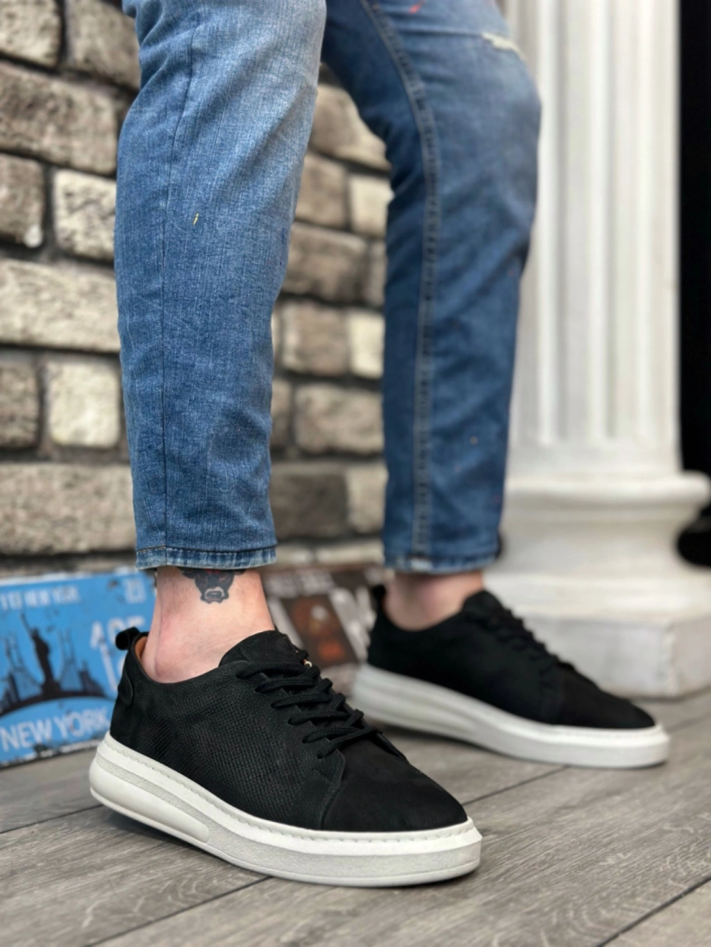 BA0336 İçi Dışı Hakiki Nubuk Deri Siyah Bağcıklı Casual Erkek Ayakkabı