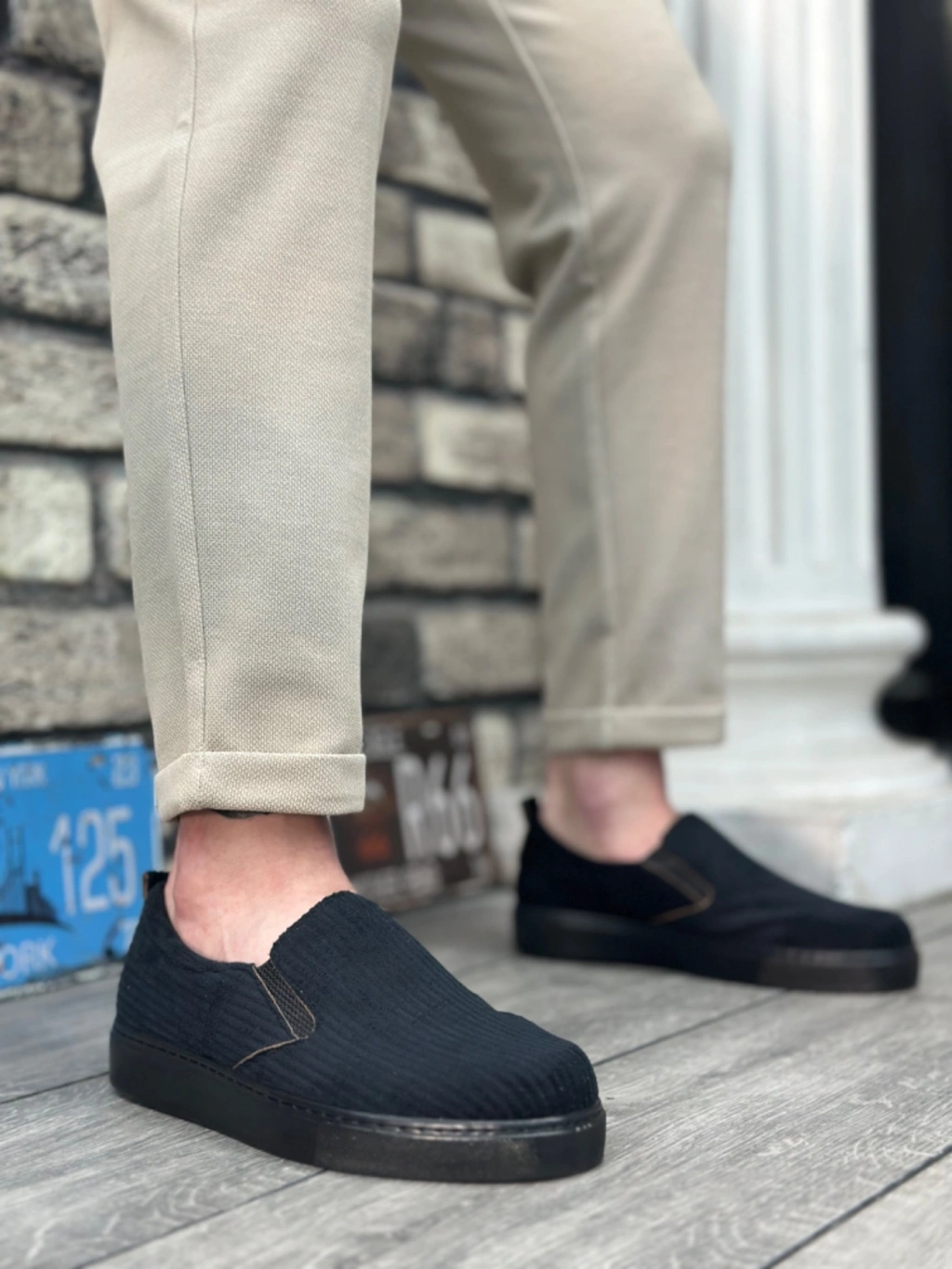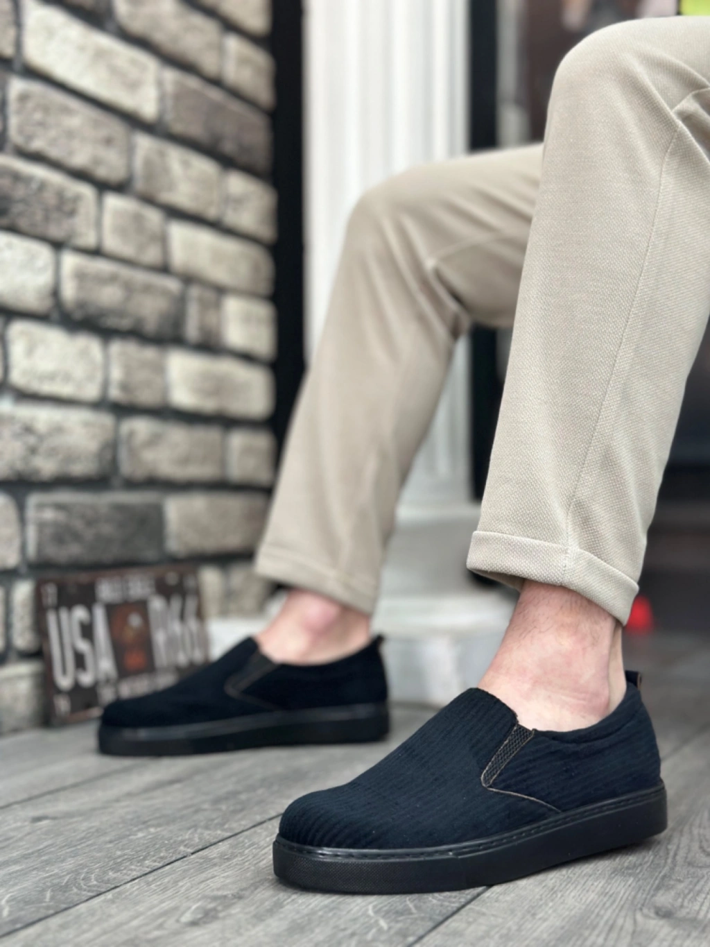 BA0339 Bağcıksız Kadife Siyah Siyah Taban Günlük Erkek Ayakkabı
