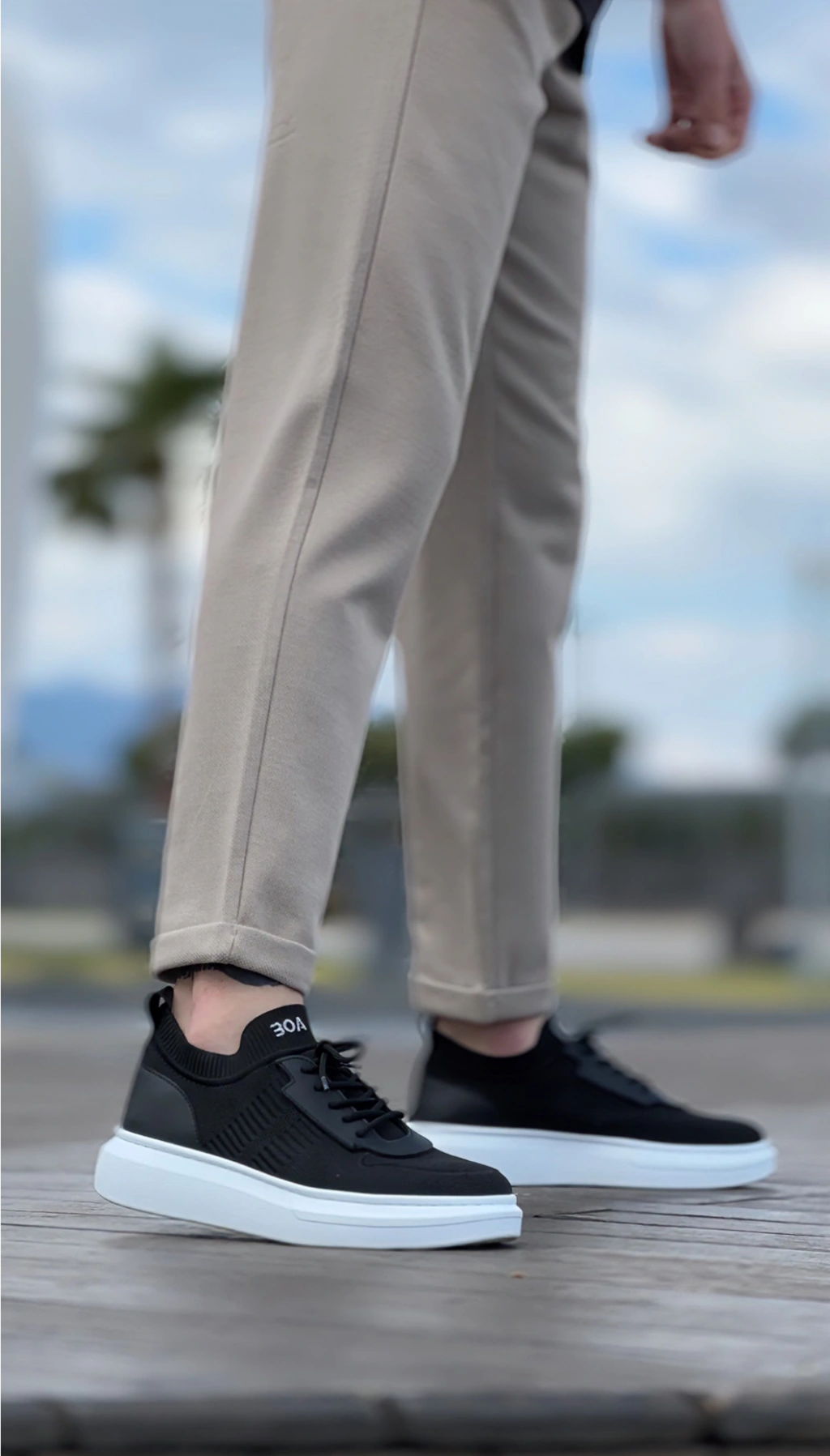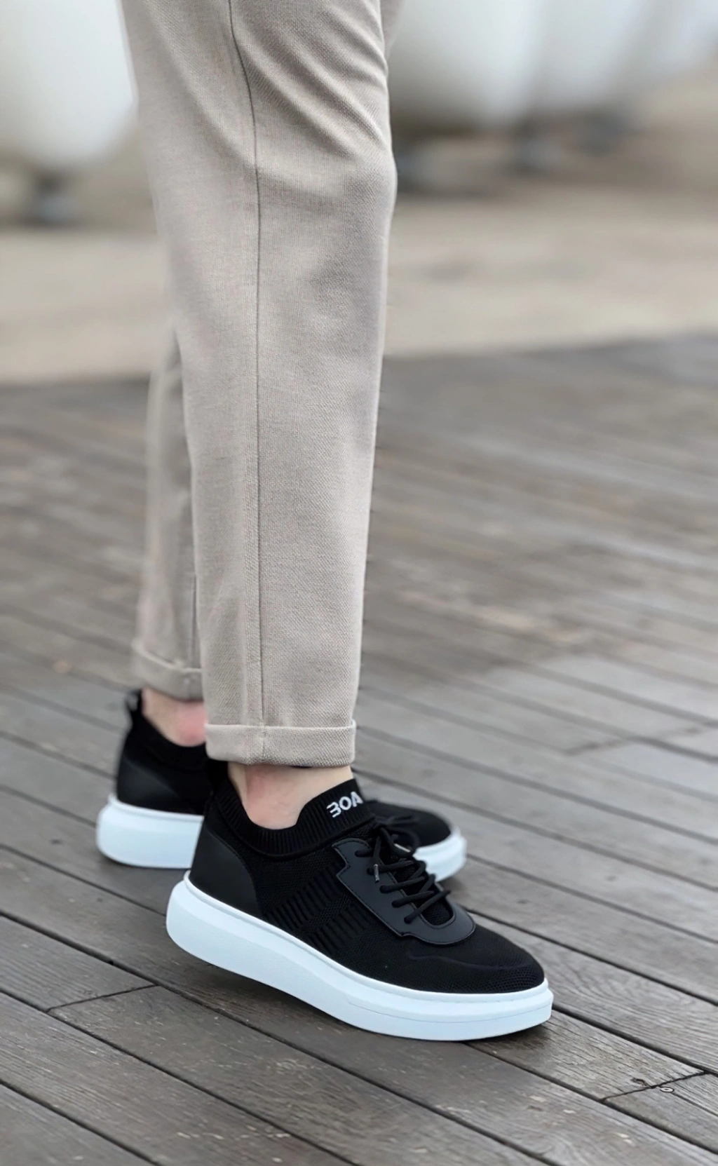 BA0812 Özel Örme Triko Tarz Siyah Renk Spor Ayakkabı