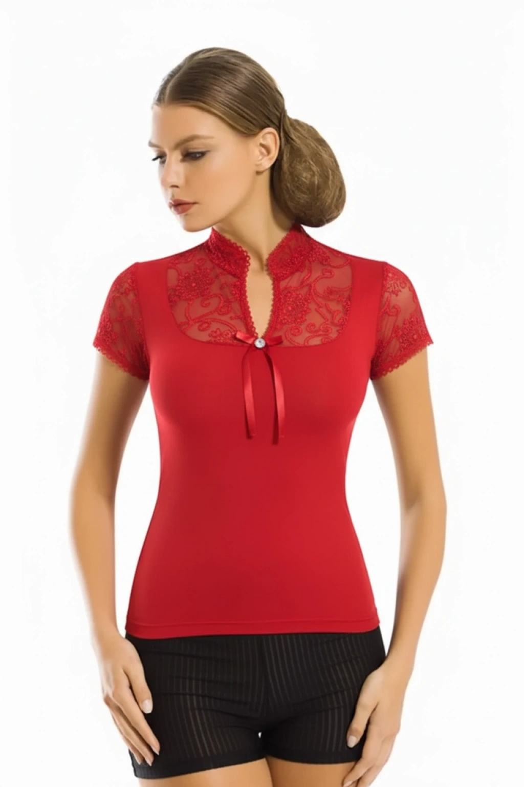 Berrak Dantelli Yarım Kollu Kadın Bluz Elestan