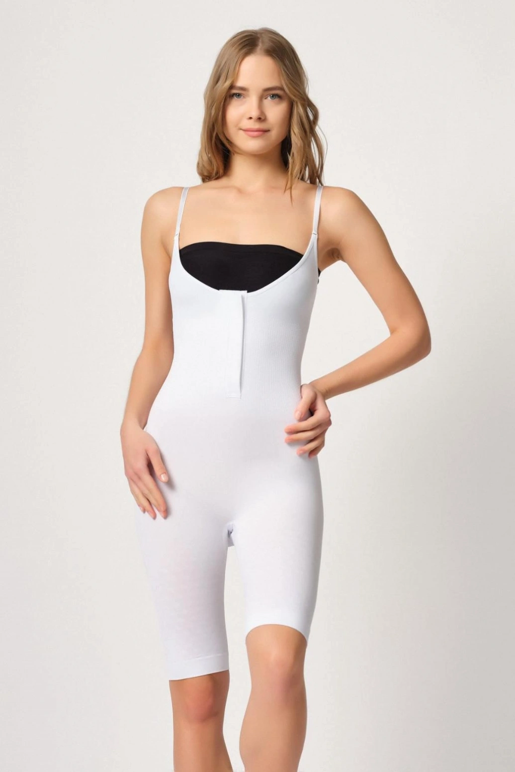 BEYAZ MI Emay 2093 Ön Agraflı Göğsü Açık Paçalı Boy Korse