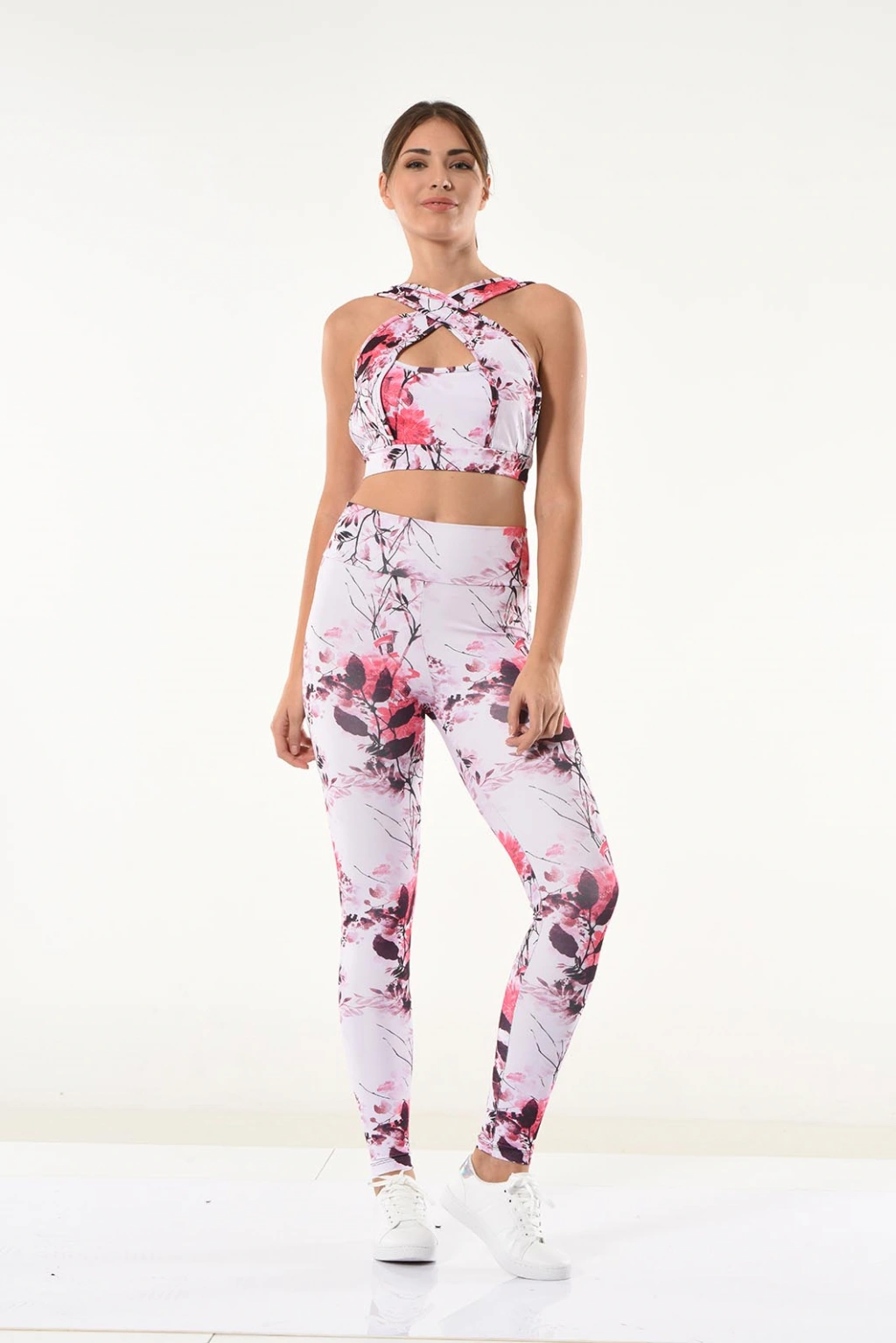 Çapraz geniş askılı büstiyer ve tayt olmak üzere 2 parçadan oluşan yeni sezon tayt takım modelidir.