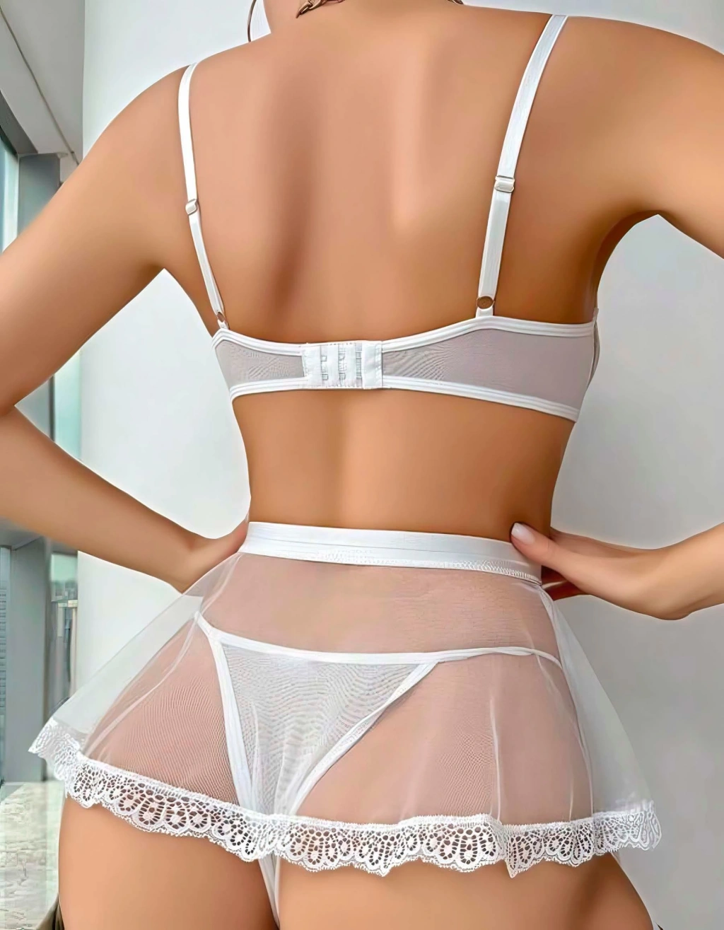 Kadın Beyaz Etekli Bacak Bantlı Fantezi Kostüm 2047