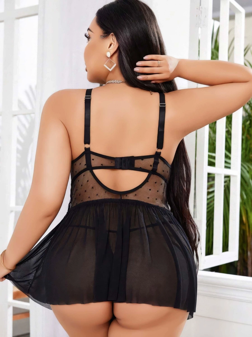 Kadın Nakışlı Siyah Gotik İp Askılı Büyük Beden Tüllü Transparan Fantezi Gecelik 8007