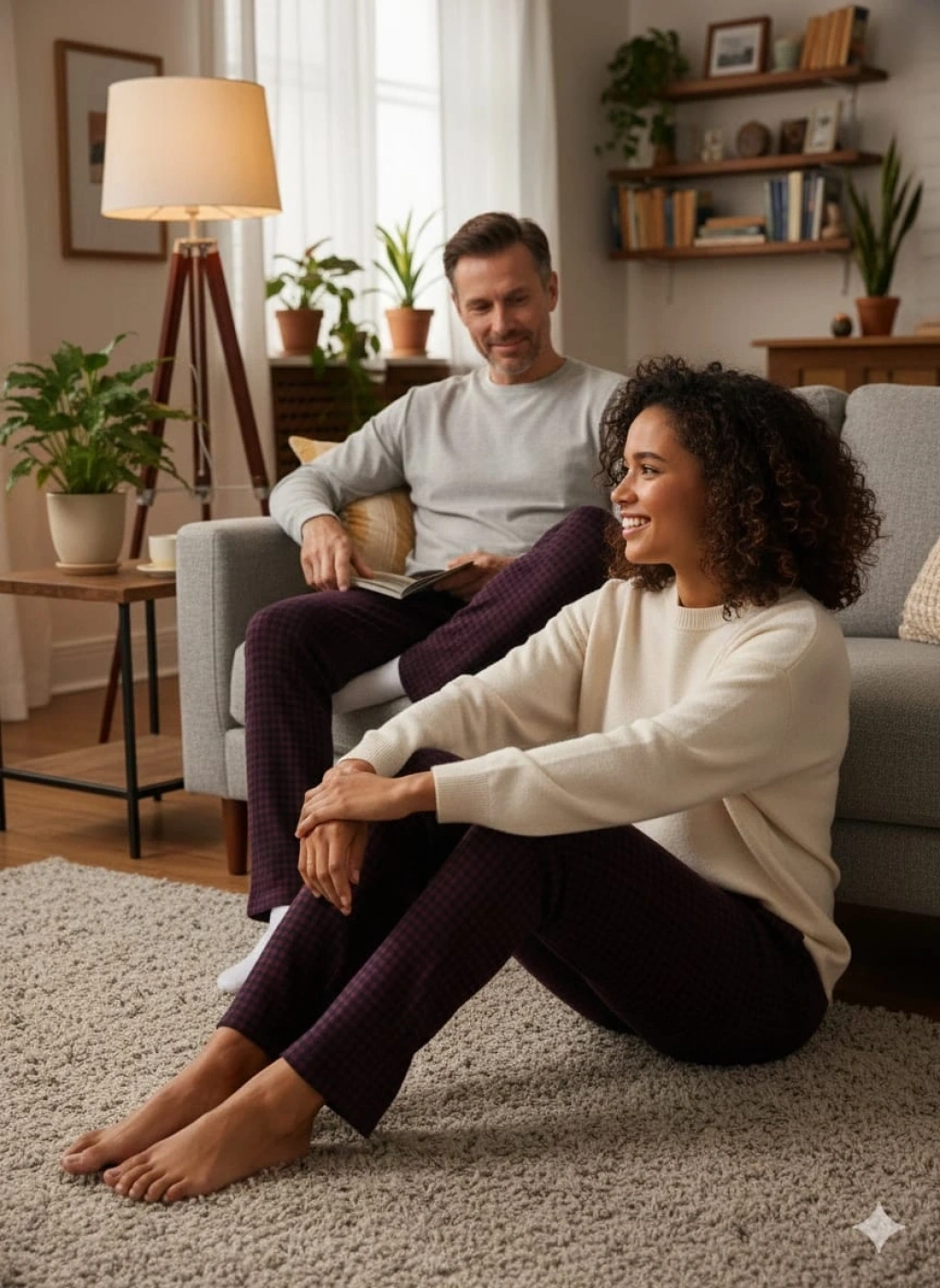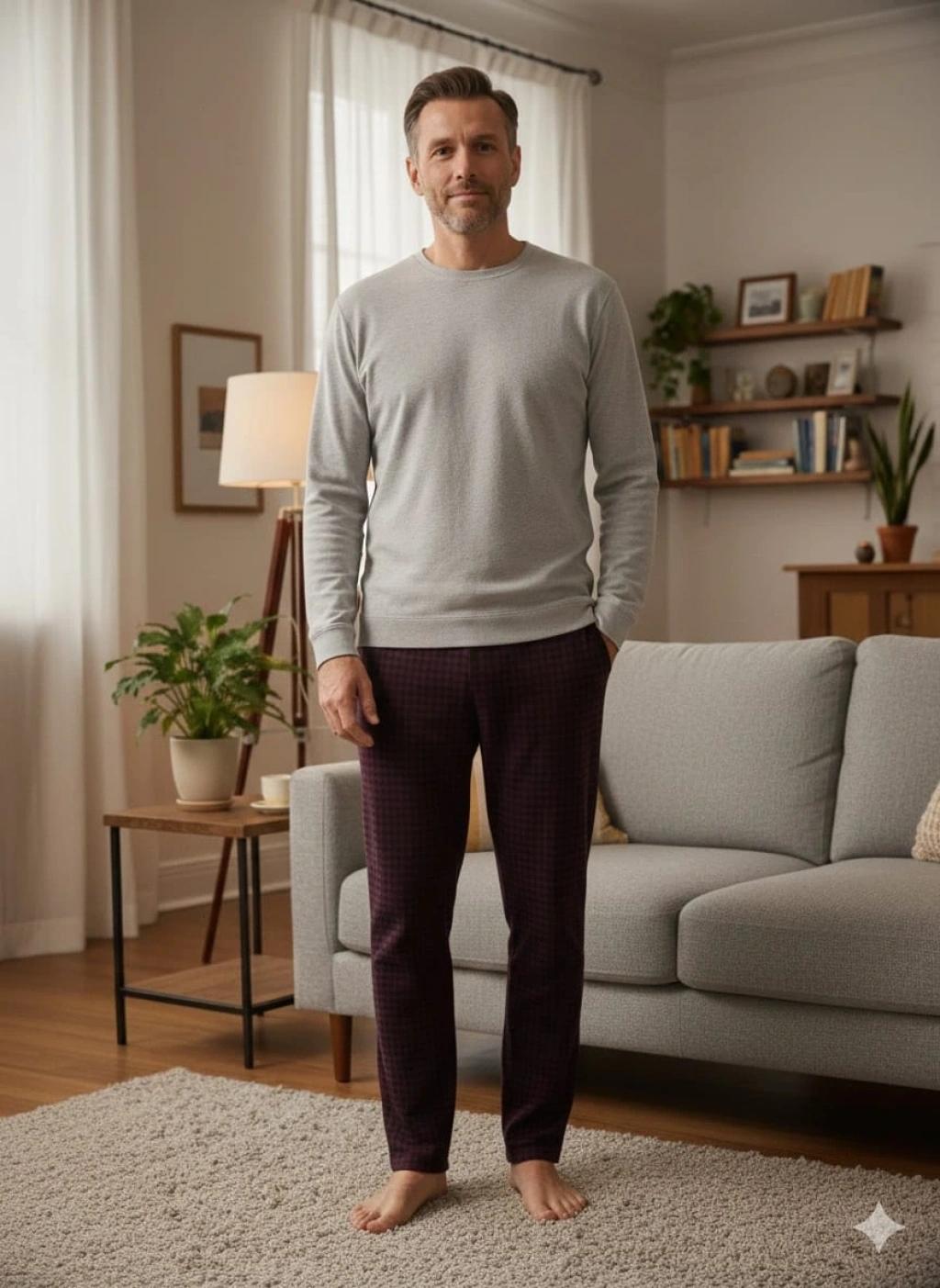 Pijalüx Tek Alt Cepli Örme Ekose Ev Pantolonu