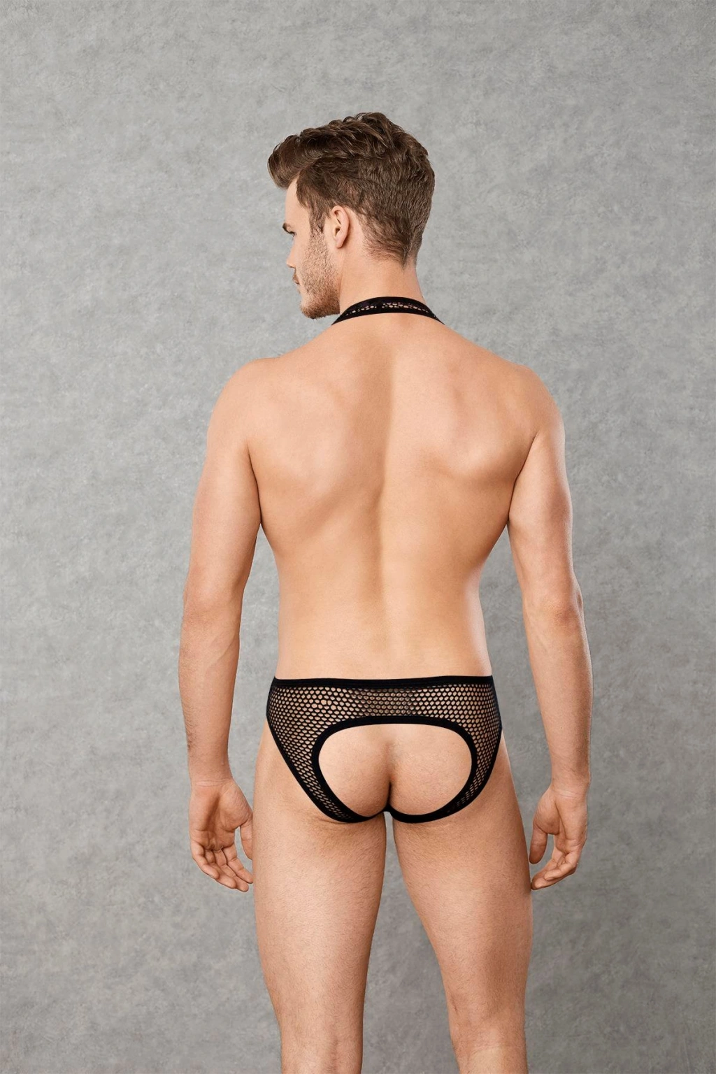 Siyah Erkek File Kumaş Askılı Jockstrap Body 3053
