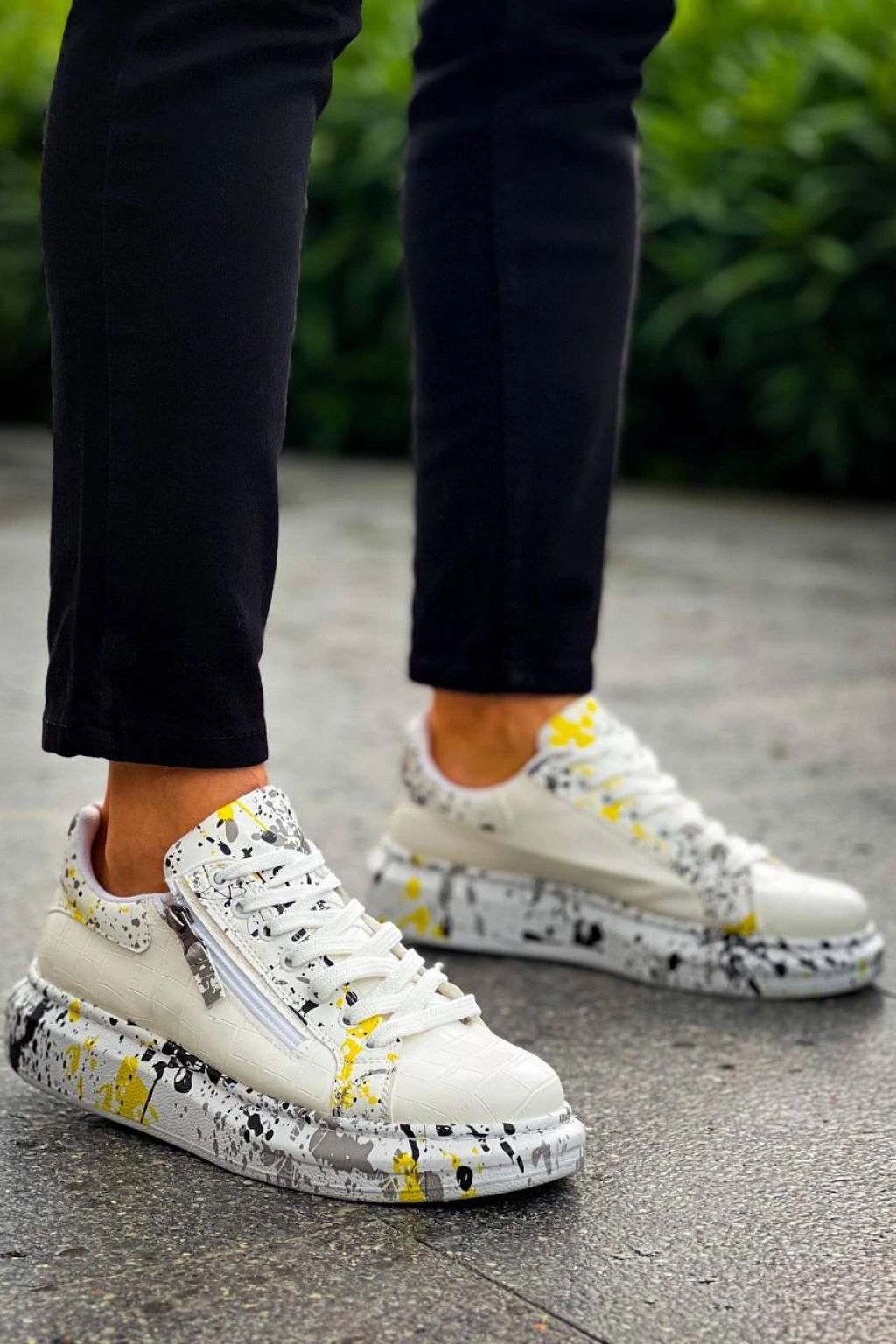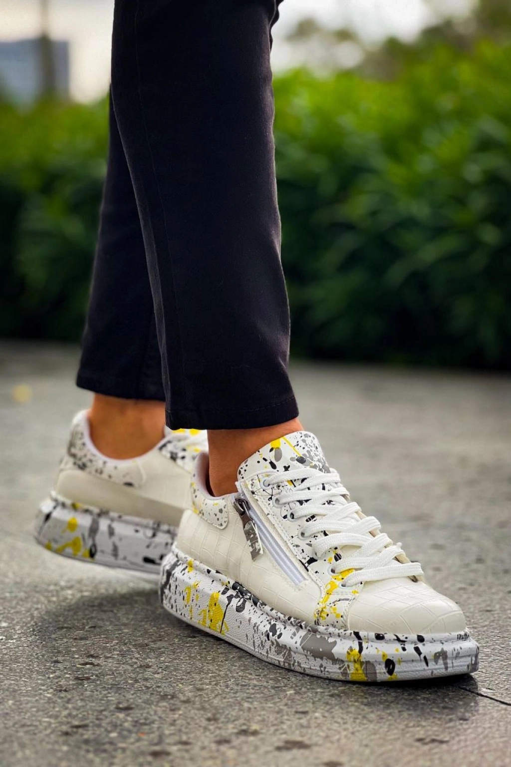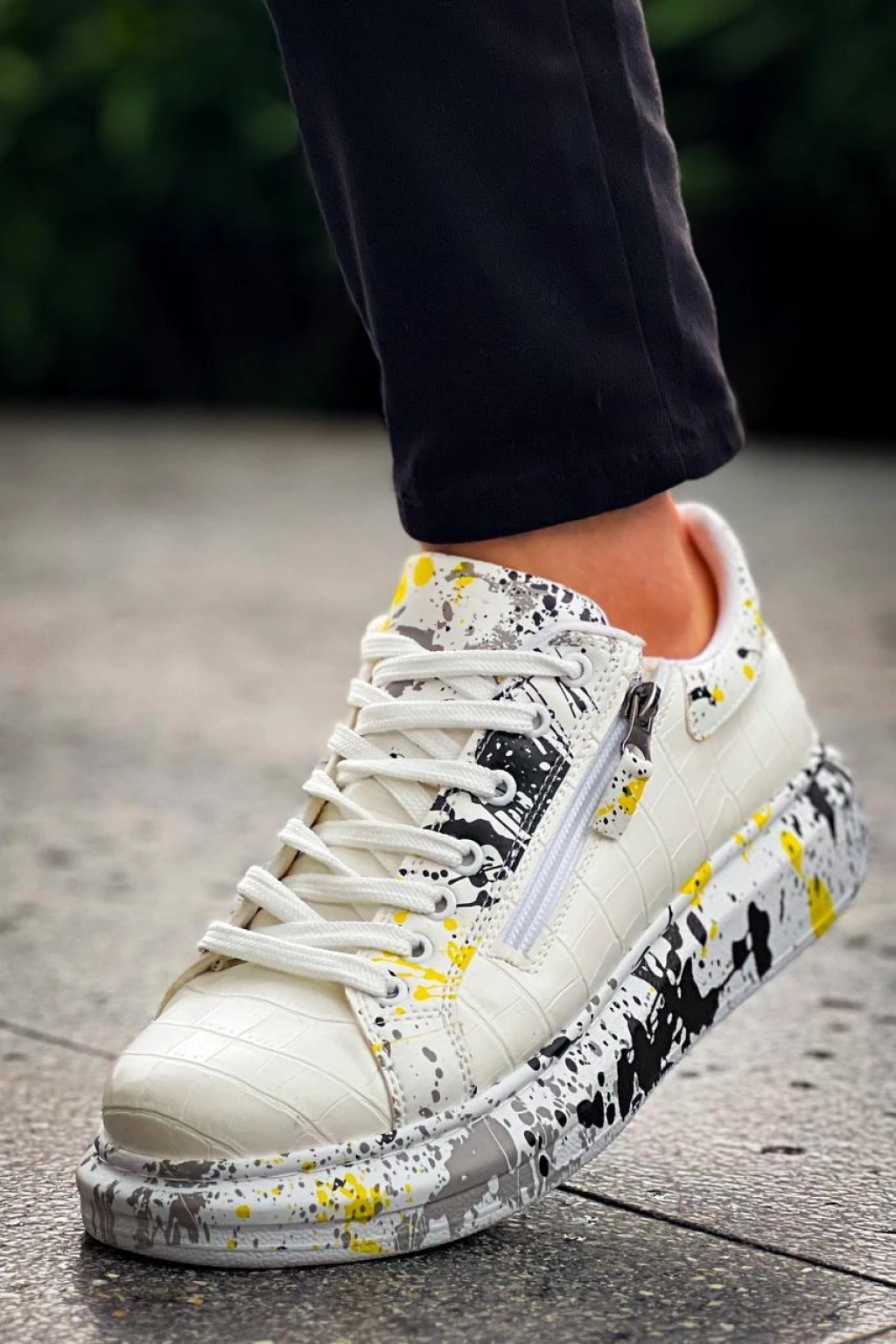 KB-02 Kuback Bağcıklı Crocodile Beyaz Sarı Günlük Erkek Ayakkabı