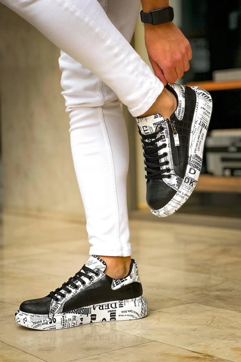 KB-02 Kuback Bağcıklı Crocodile Siyah Gazete Günlük Erkek Ayakkabı