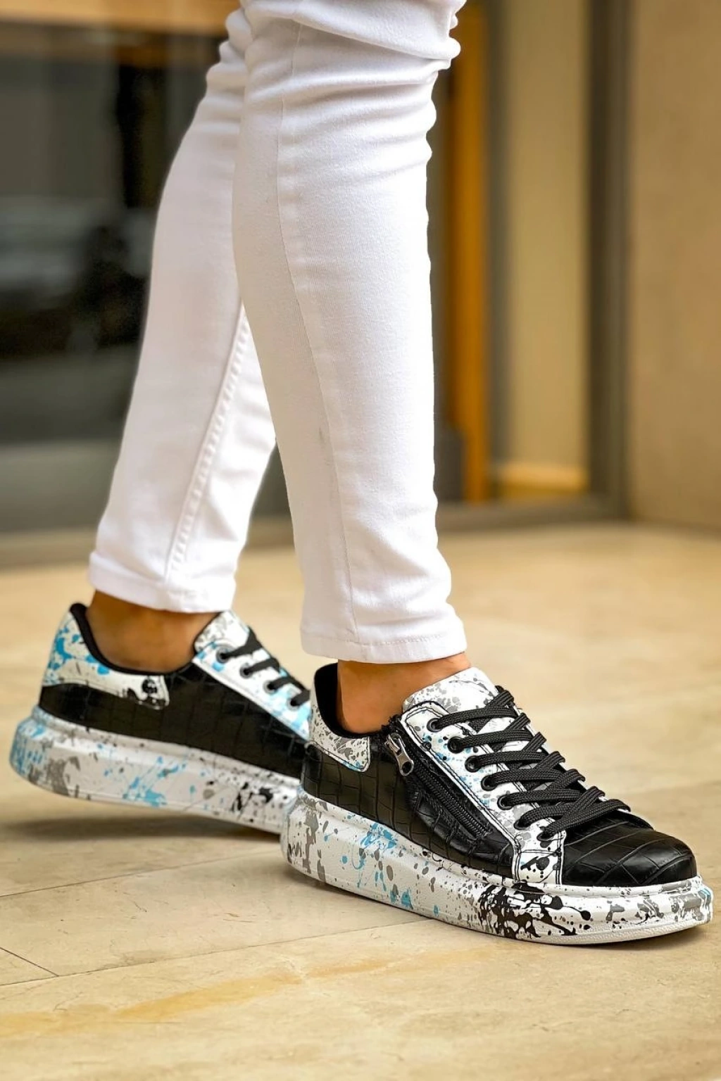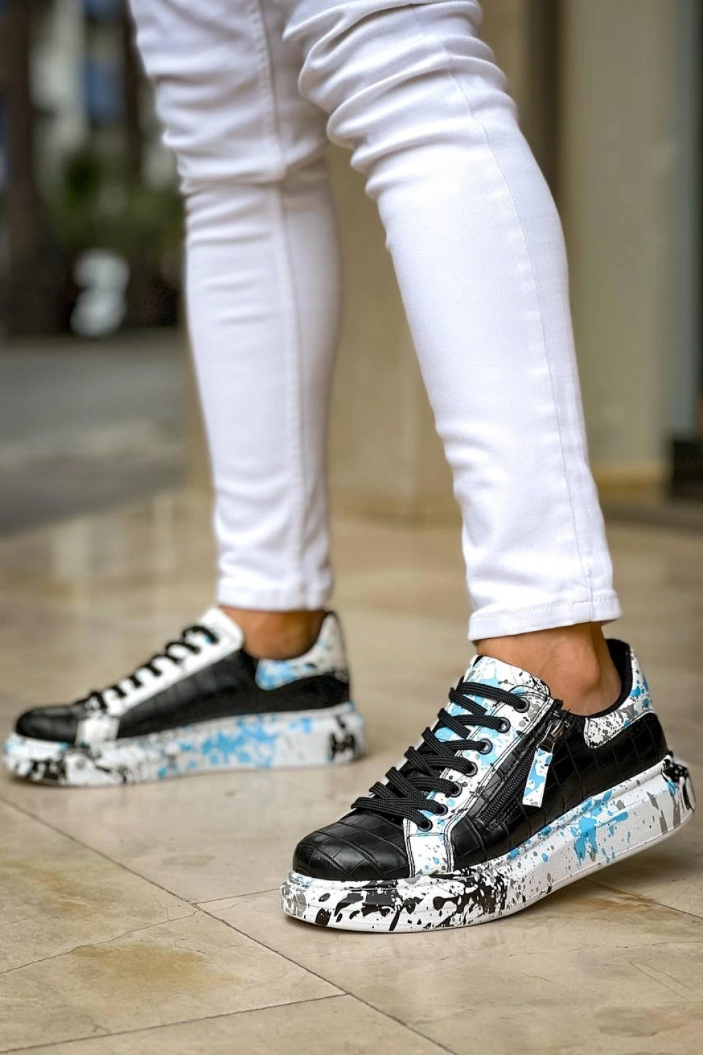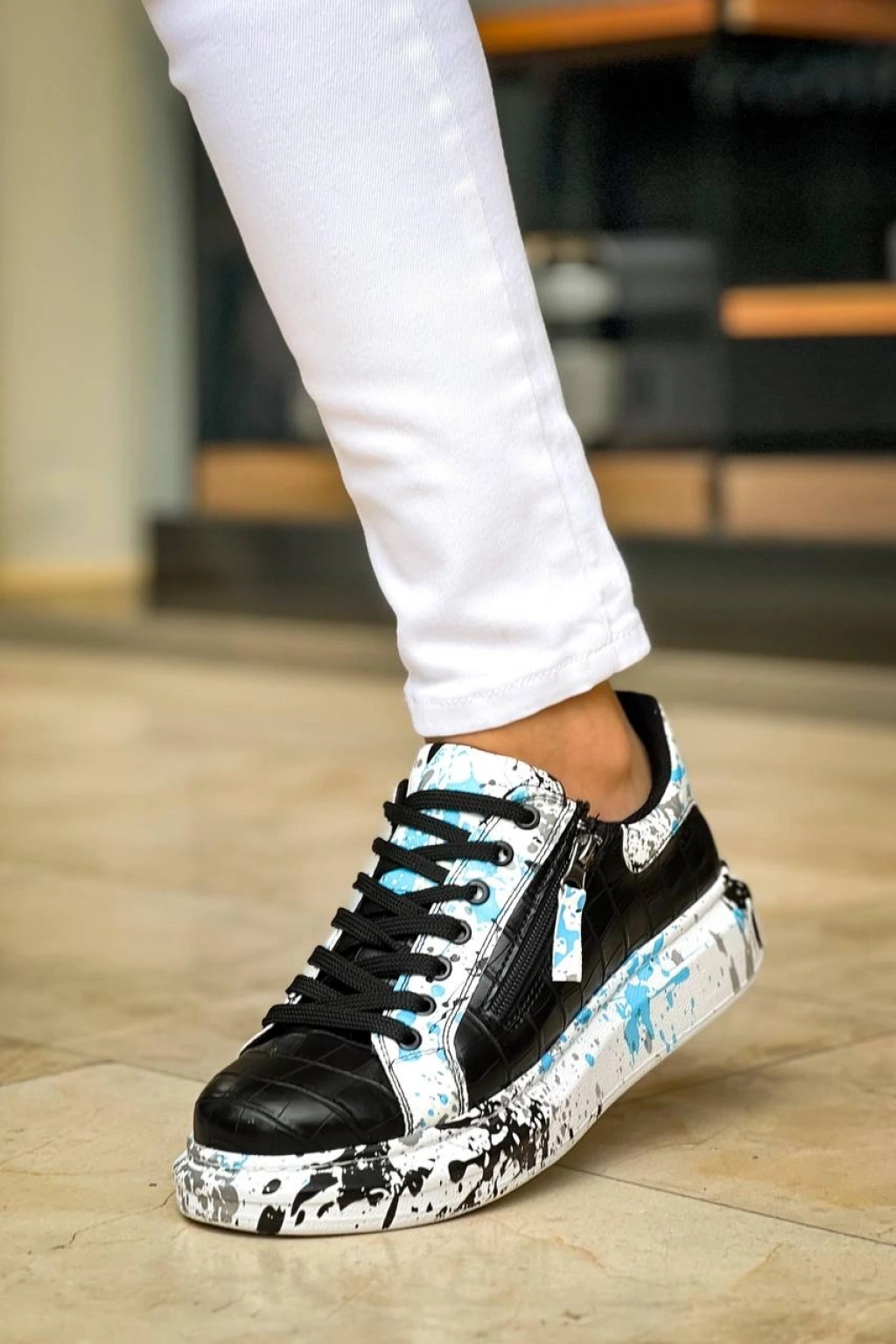 KB-02 Kuback Bağcıklı Crocodile Siyah Mavi Günlük Erkek Ayakkabı