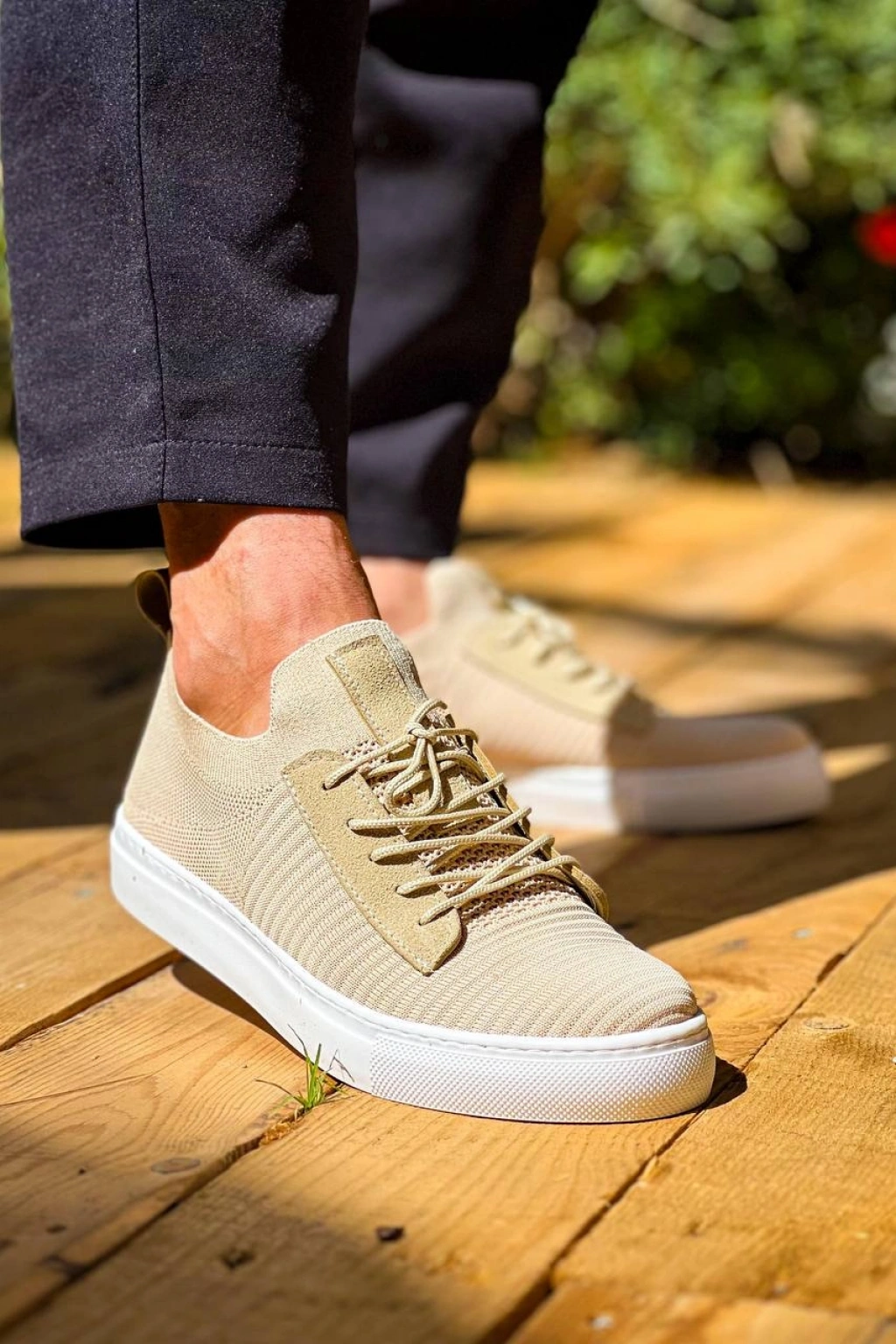 KB-110 Kuback Bej Triko Yüksek Taban Bağcıklı Günlük Erkek Ayakkabı