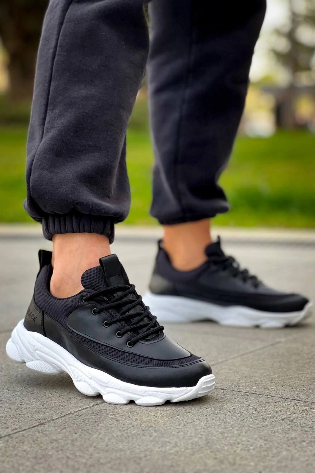 KB-707 Kuback Siyah Cilt Yüksek Taban Bağcıklı Günlük Erkek Ayakkabı