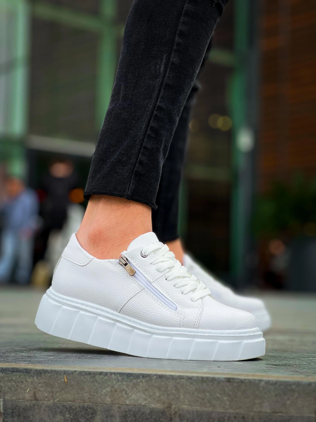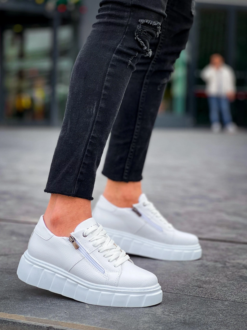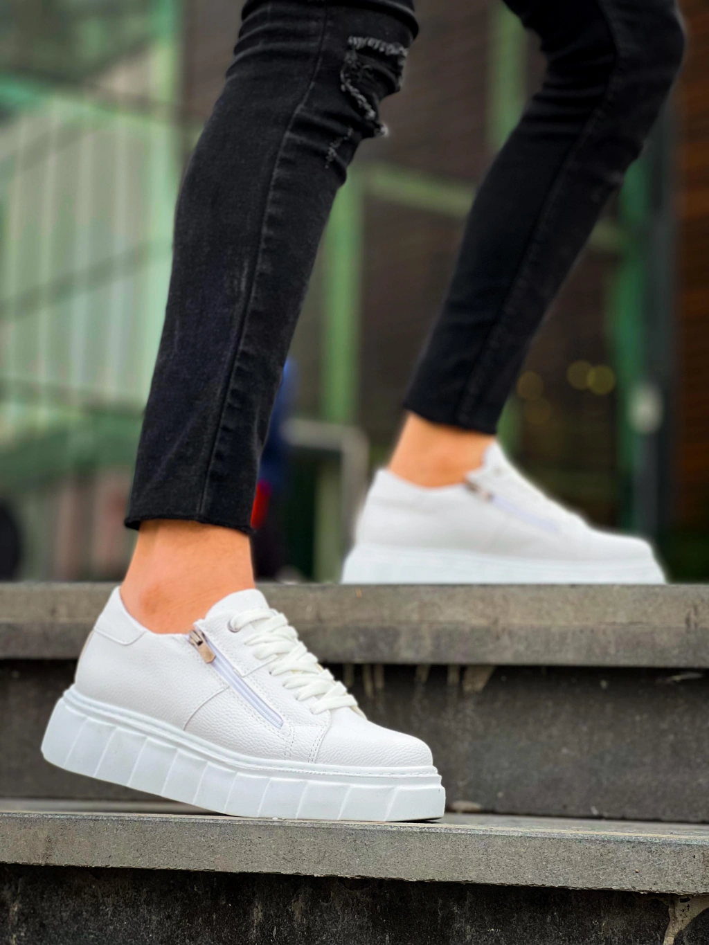 KB-X155 Kuback Beyaz Cilt Detaylı Beyaz Yüksek Taban Günlük Spor Ayakkabı