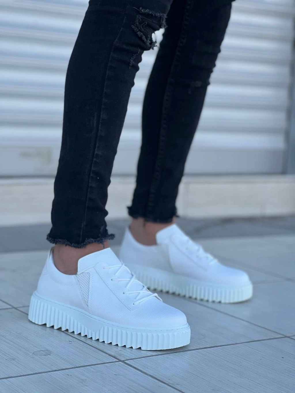 KB-X502 Kuback Beyaz Cilt Yüksek Beyaz Taban Bağcık Detaylı Lastikli Günlük Erkek Ayakkabı