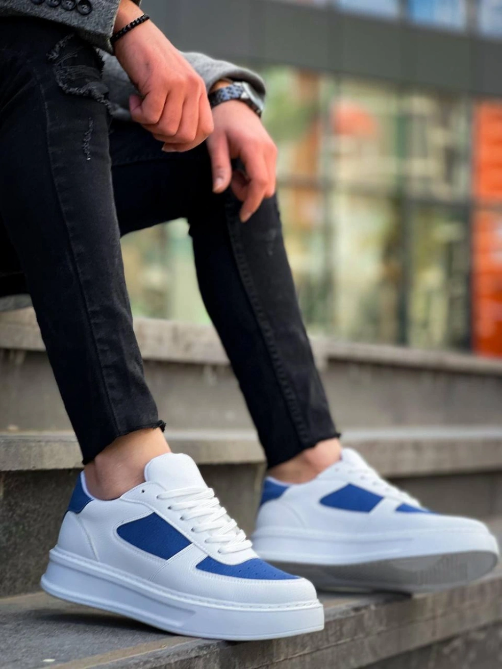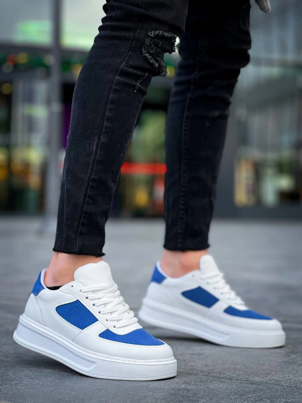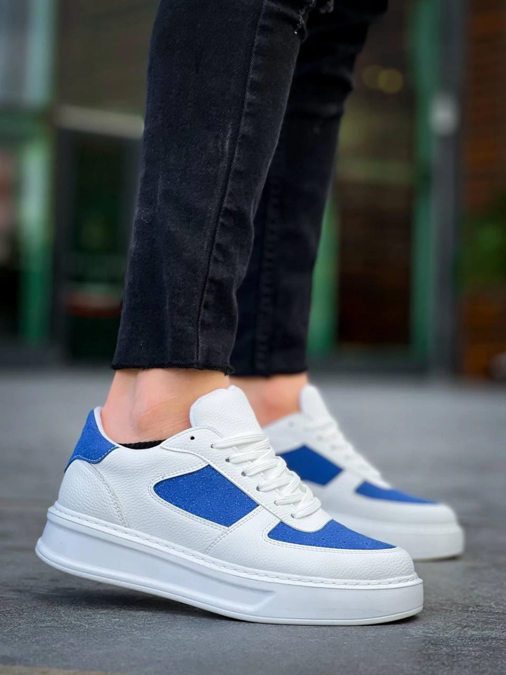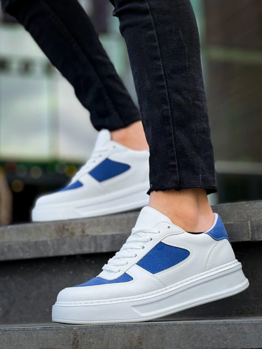 KB-X8 Kuback Beyaz Cilt Mavi Süet Detaylı Beyaz Yüksek Taban Günlük Spor Ayakkabı