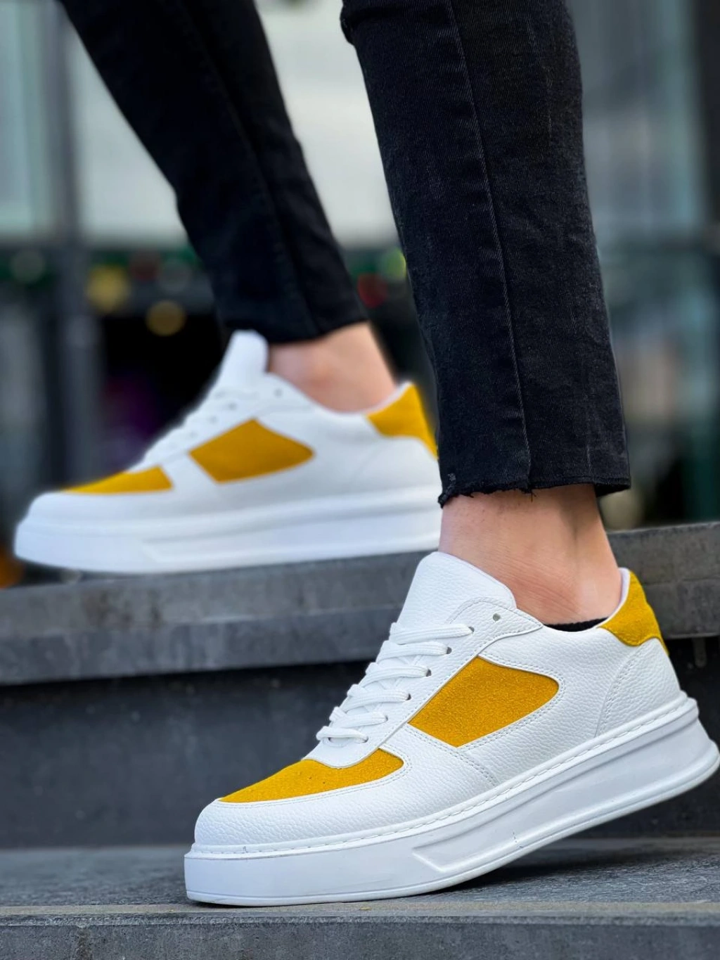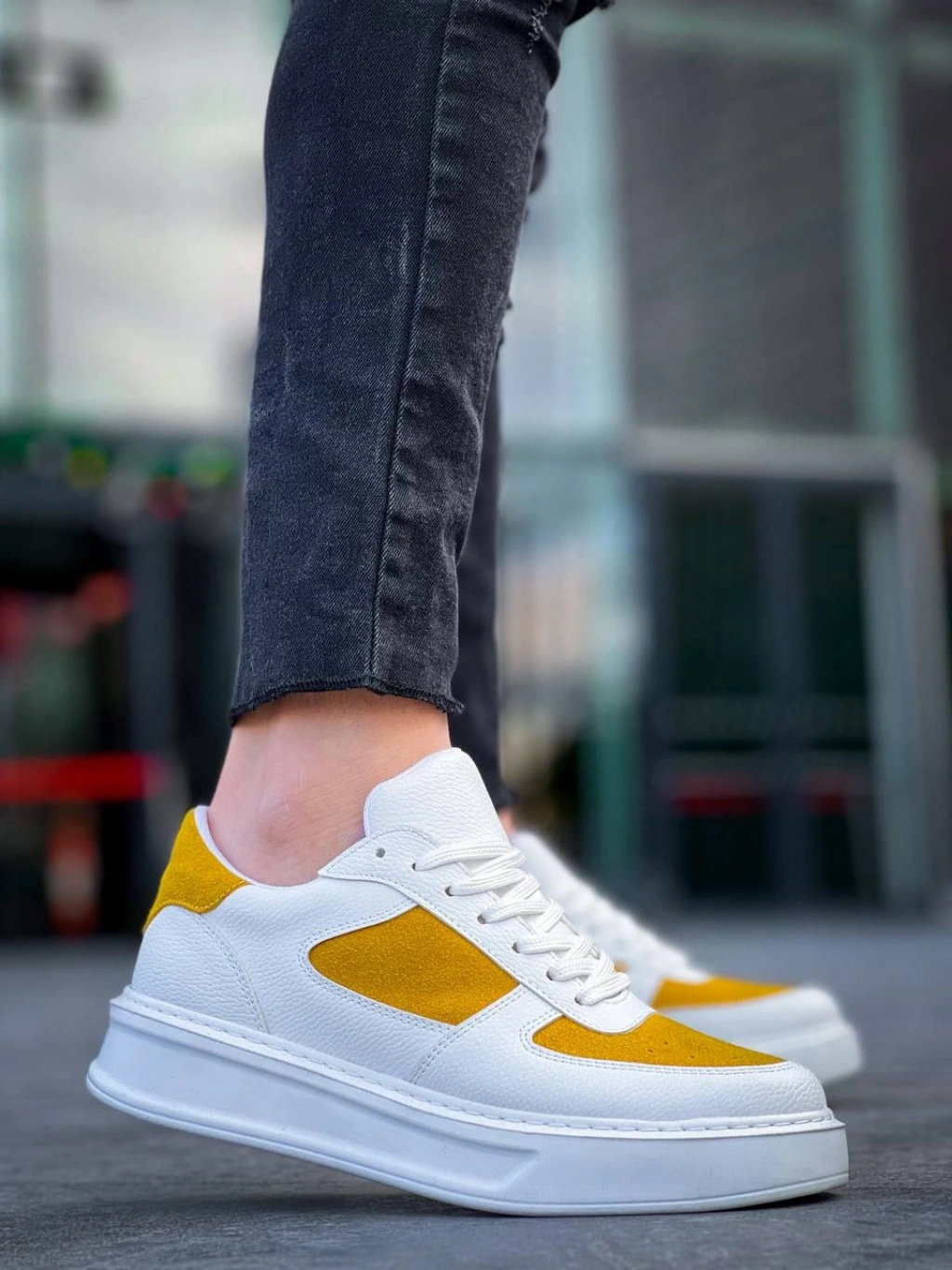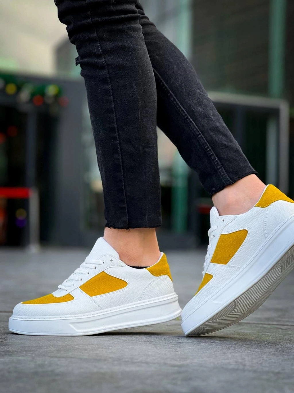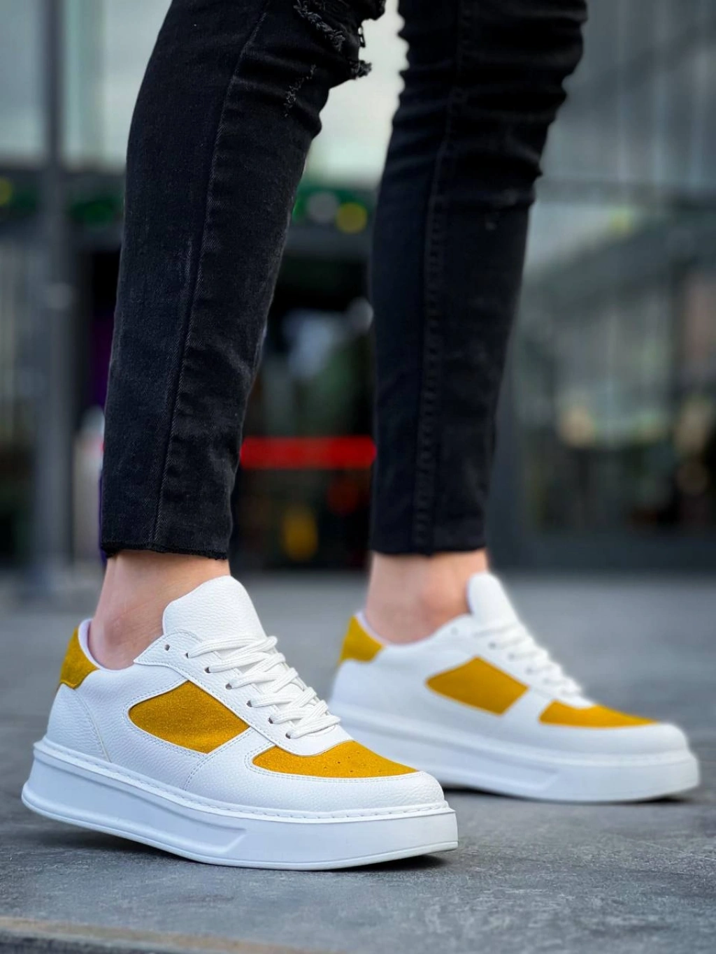 KB-X8 Kuback Beyaz Cilt Sarı Süet Detaylı Beyaz Yüksek Taban Günlük Spor Ayakkabı
