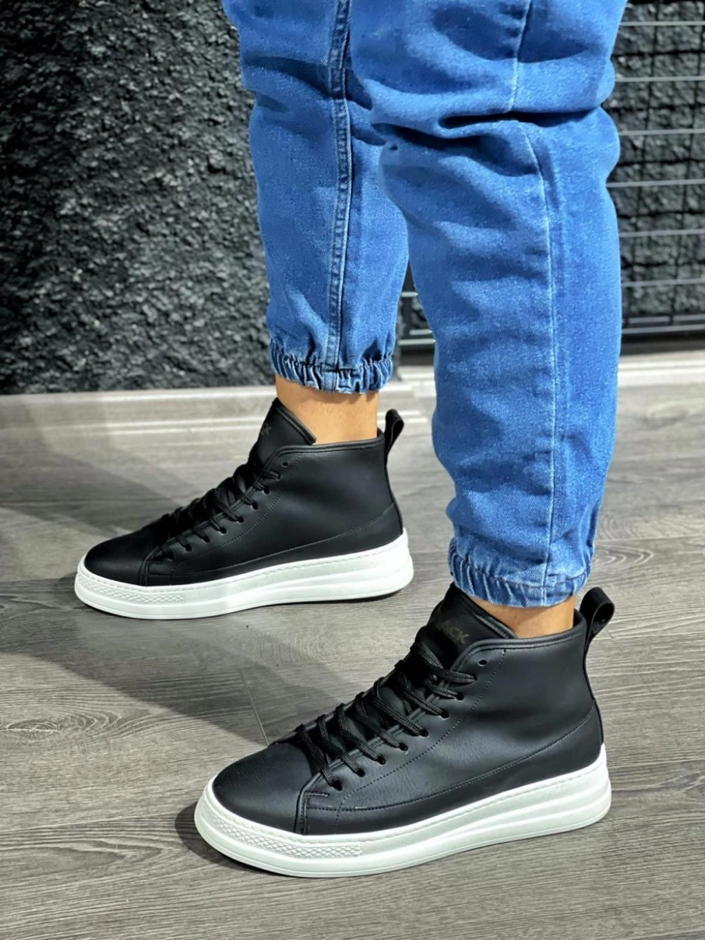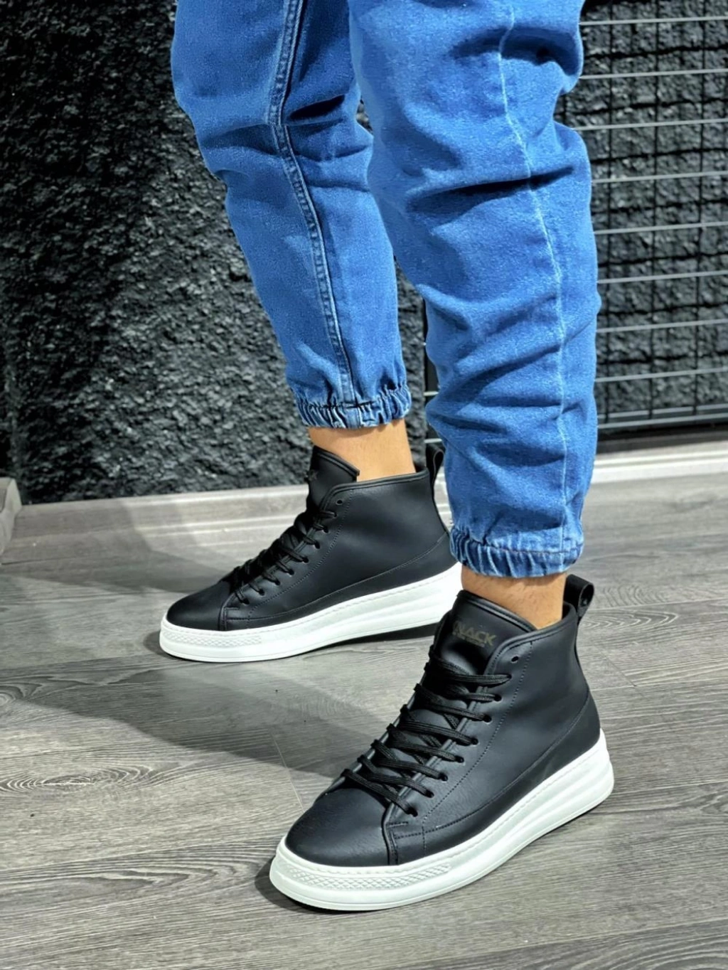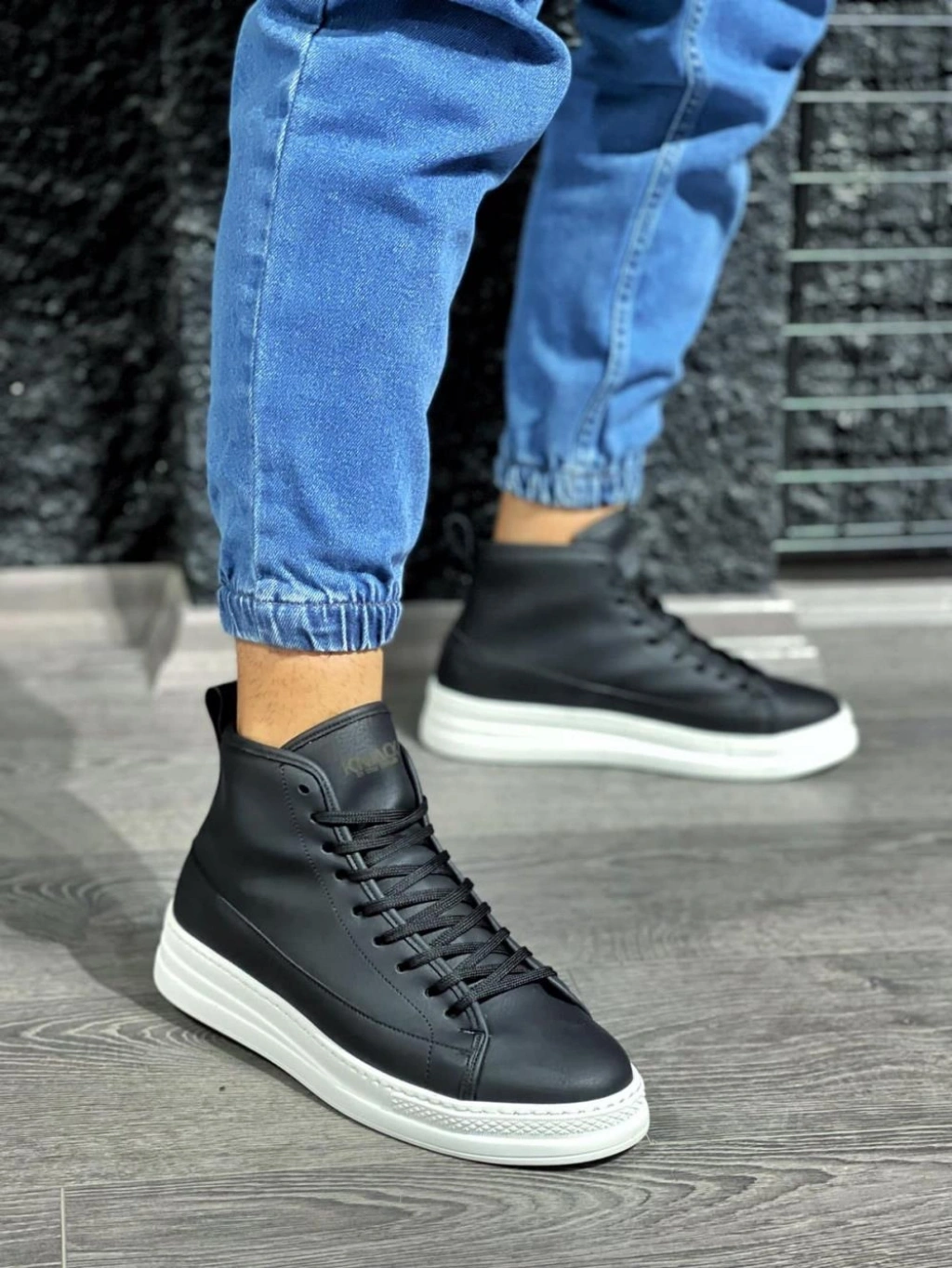 Knack Yüksek Taban Ayakkabı C-030 Siyah (Beyaz Taban)