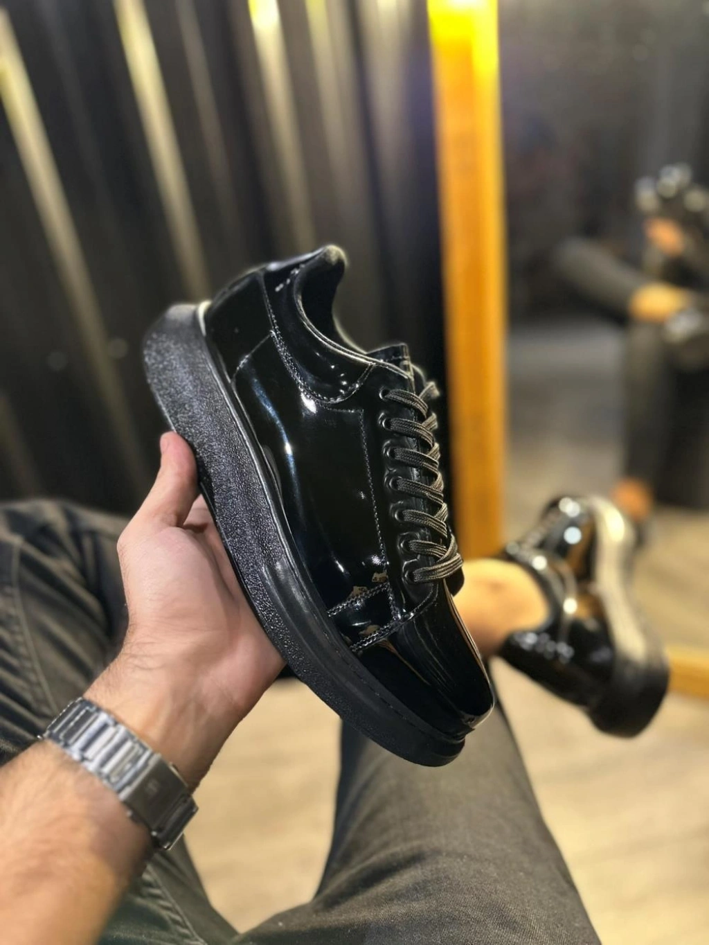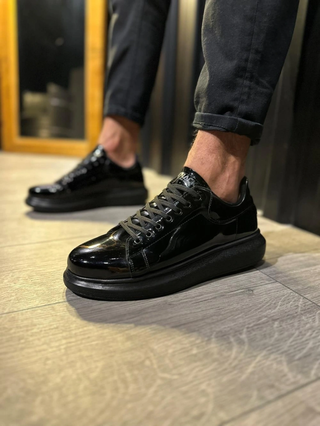 Knack Yüksek Taban Günlük Ayakkabı 044 Siyah Rugan (Siyah Taban)