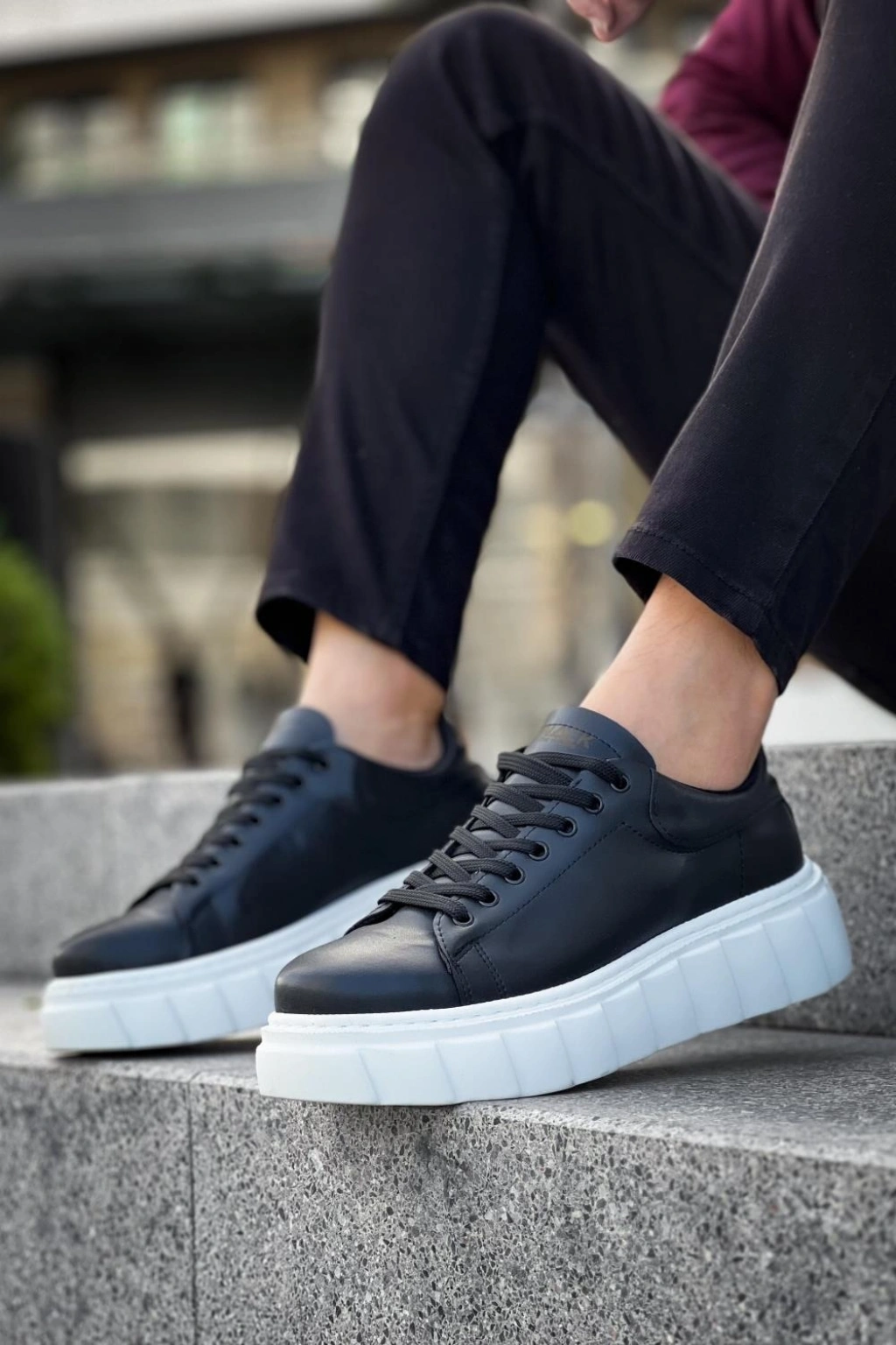 Knack Yüksek Taban Günlük Ayakkabı 144 Siyah (Beyaz Taban)