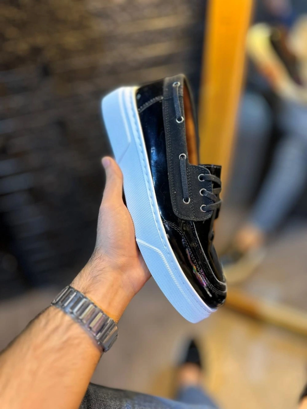 Knack Yüksek Taban Günlük Ayakkabı 700 Siyah Rugan (Beyaz Taban)