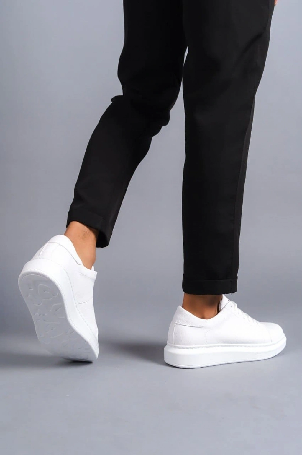 SLW151 Boost Bağcıklı Cilt Erkek Günlük Sneaker Ayakkabı CBT - Beyaz